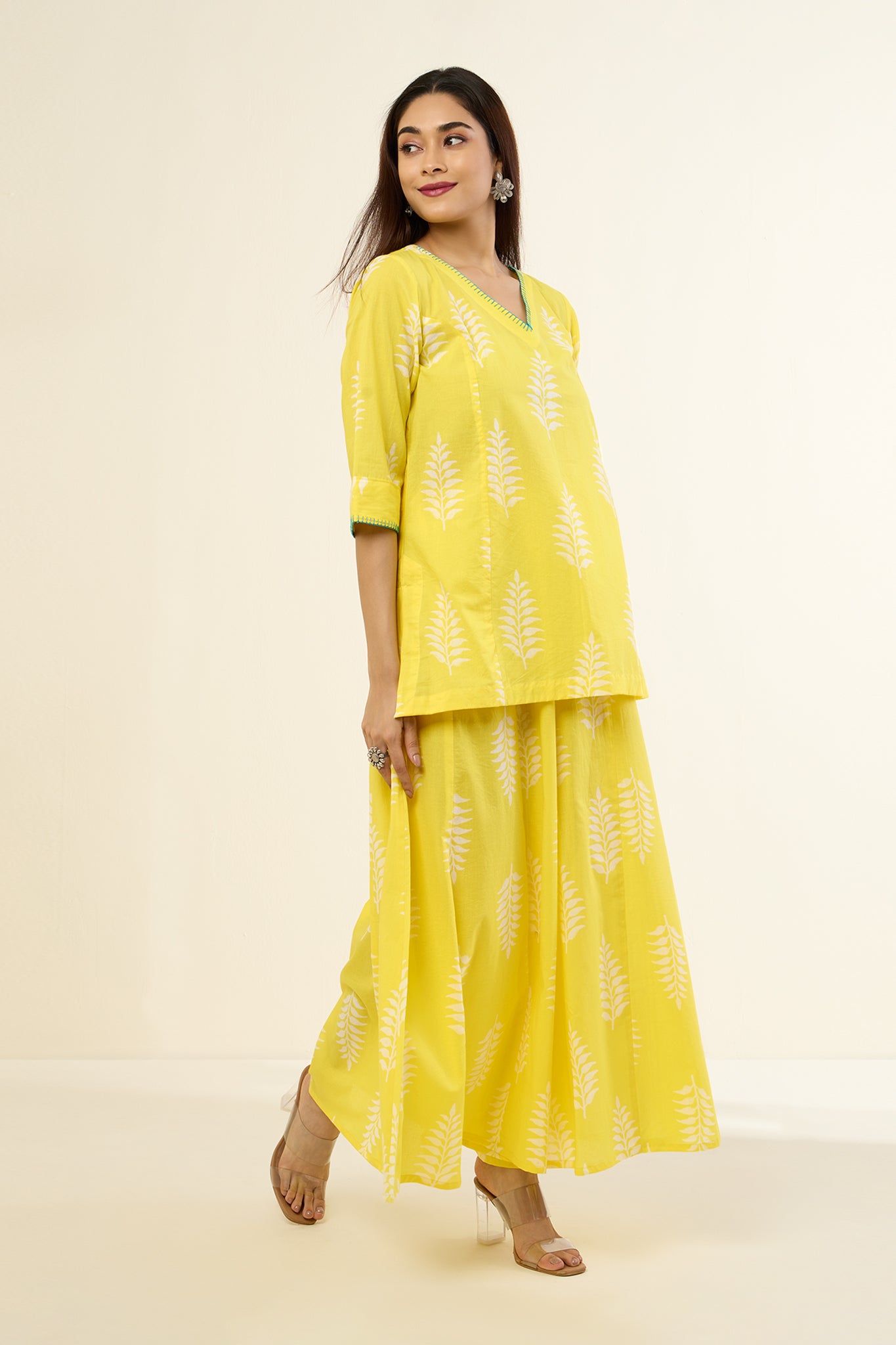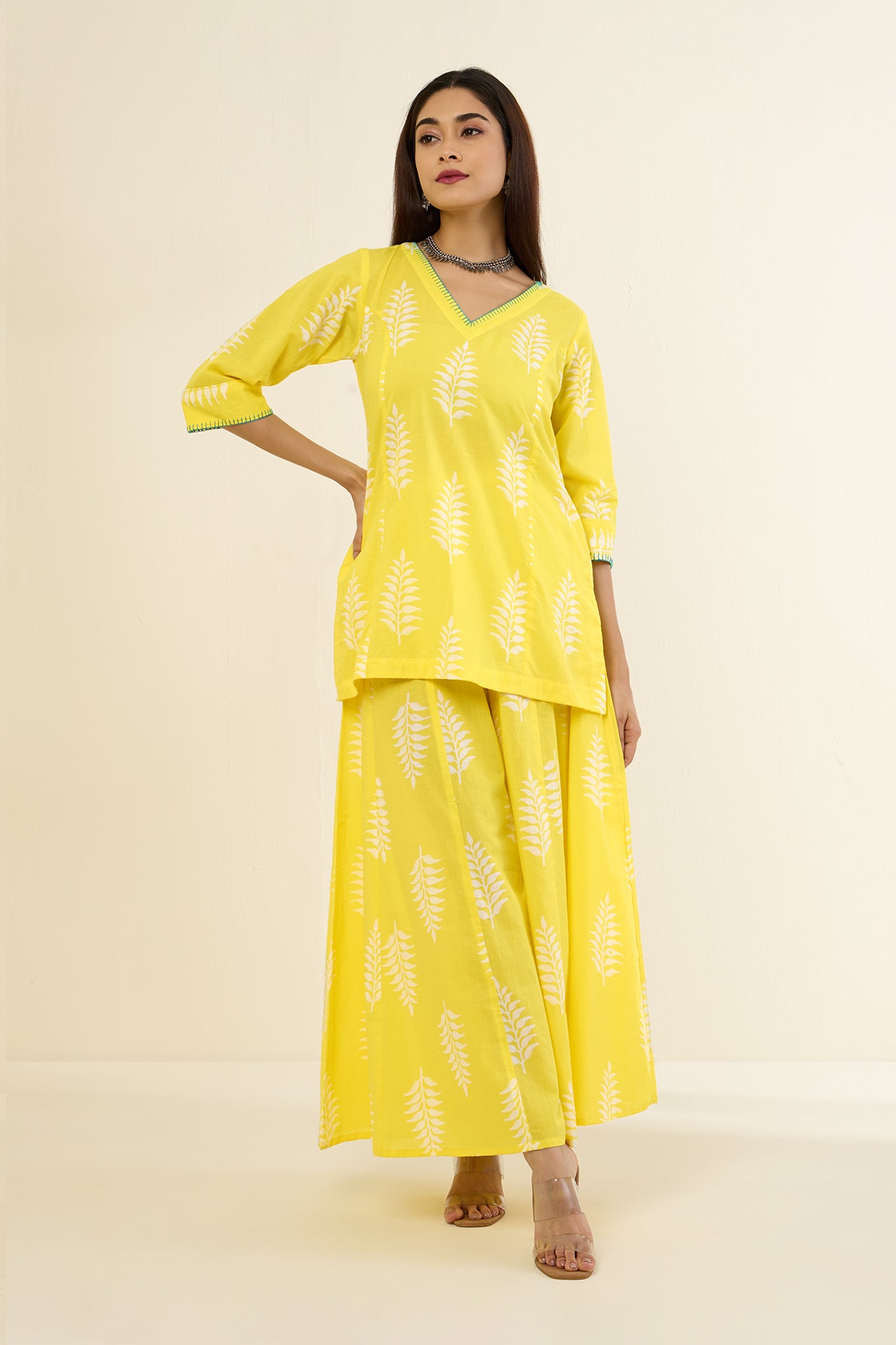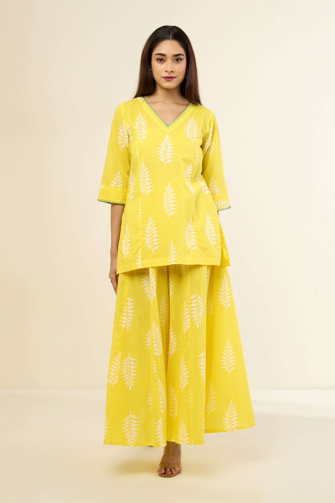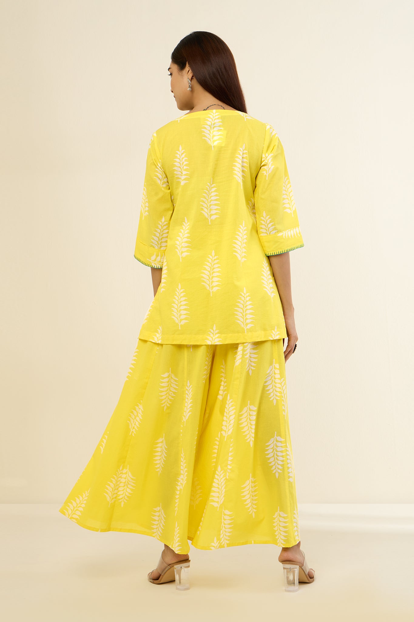 Co-ord Set Pop Yellow Camellia Bloom Tunic & Sharara (Set of 2)
