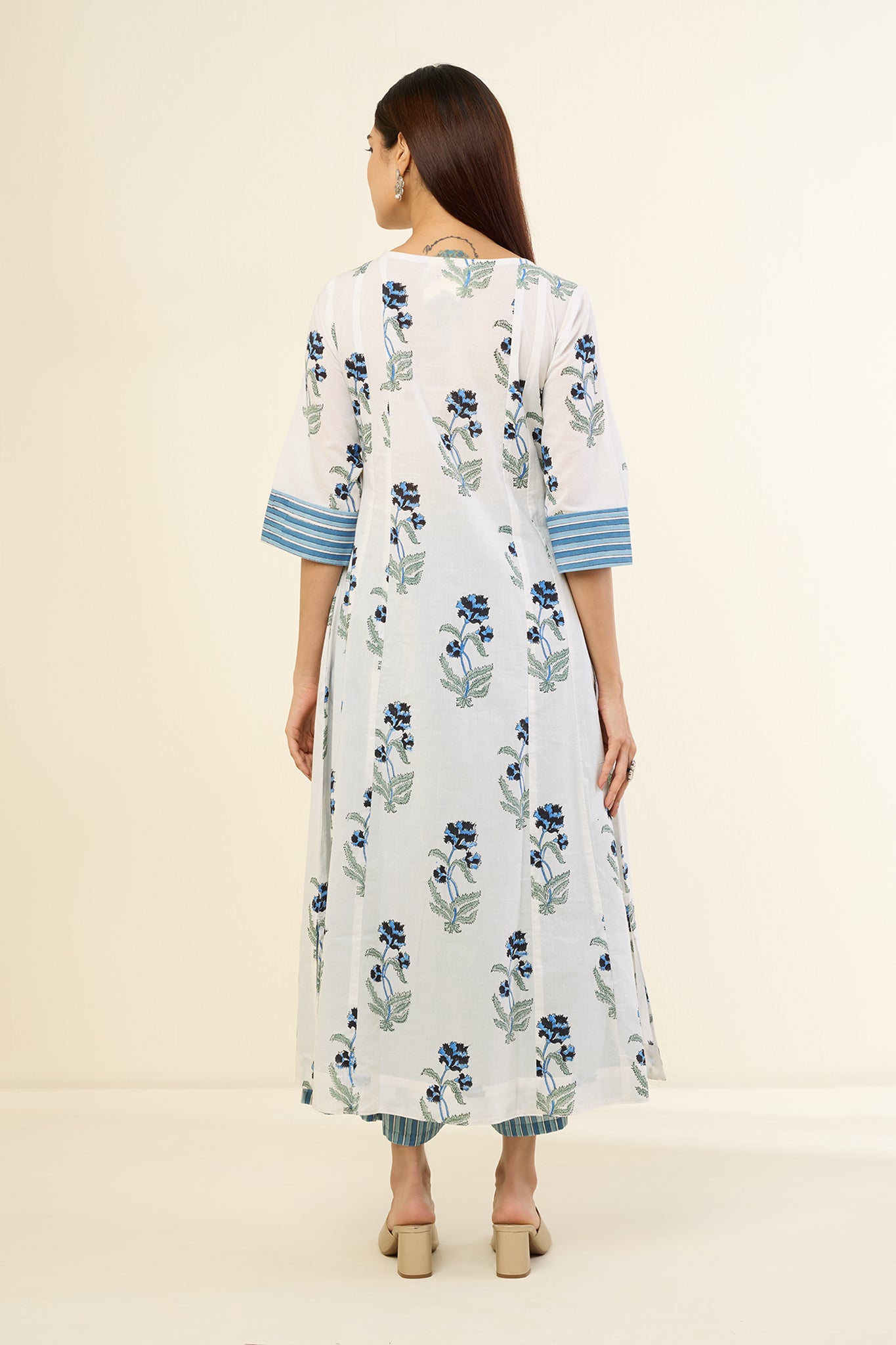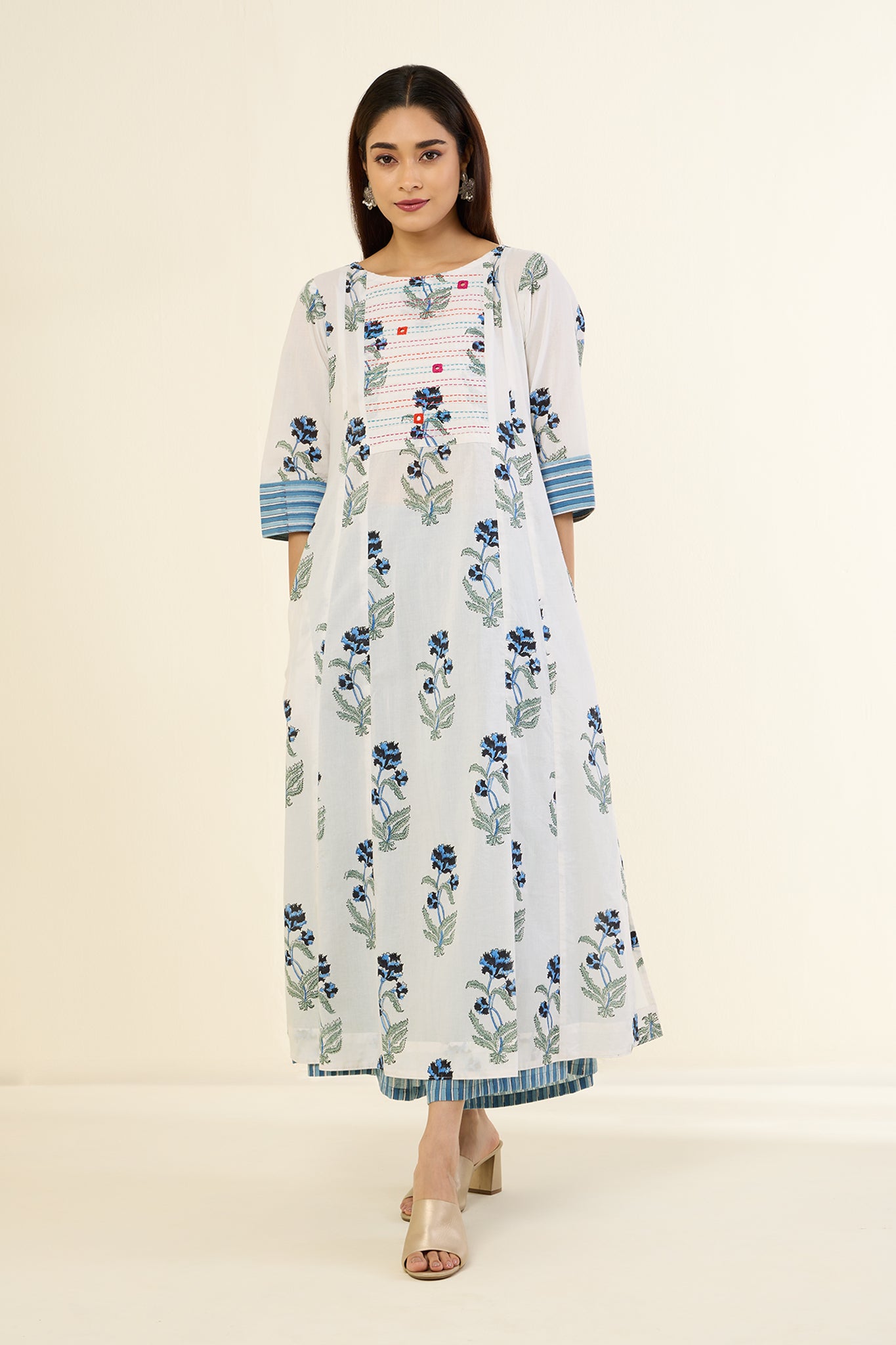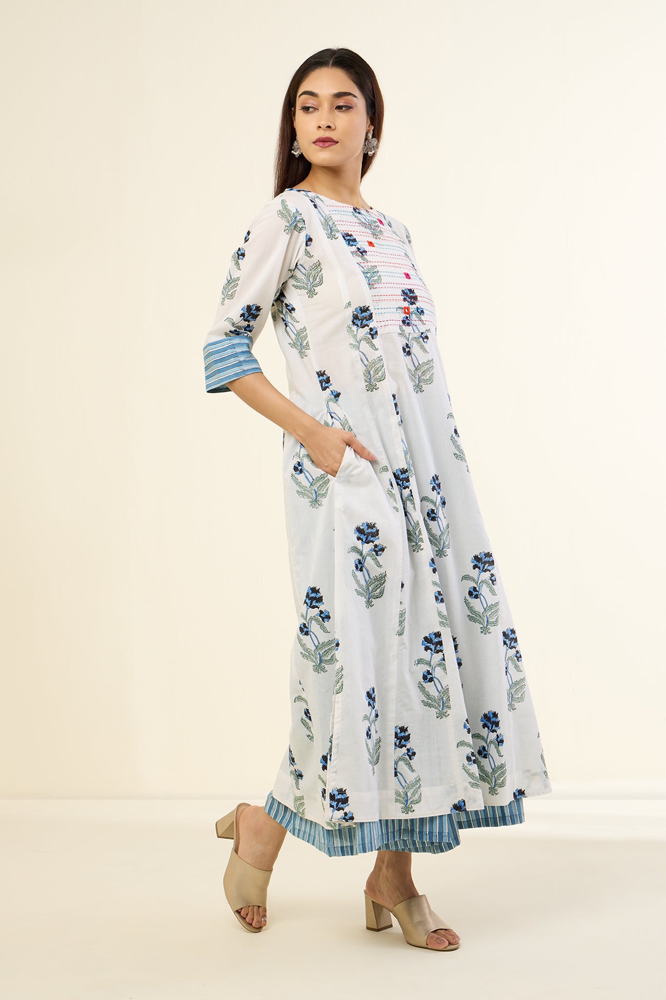 Dreamy Indigo Blooms Pintuck Yoke Kurta with Pockets