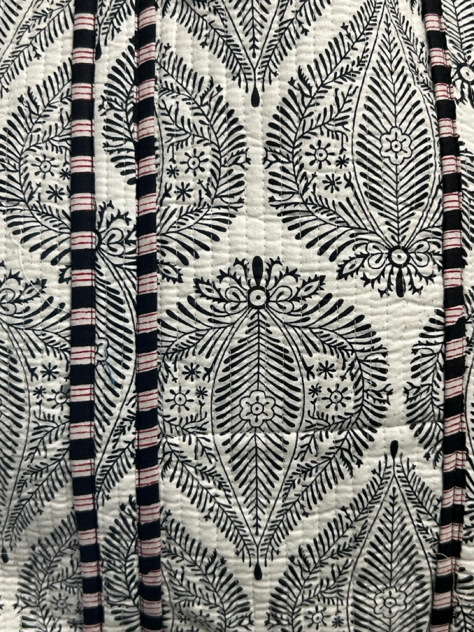 Introducing our Quilted Cotton Tote Bag, the ultimate companion for your everyday adventures and travels. This oversized shopper is crafted from premium cotton, offering a spacious interior without compromising on style or durability.The bag is reversible, showcasing vibrant prints on both sides, giving you the flexibility to match your mood or outfit effortlessly.