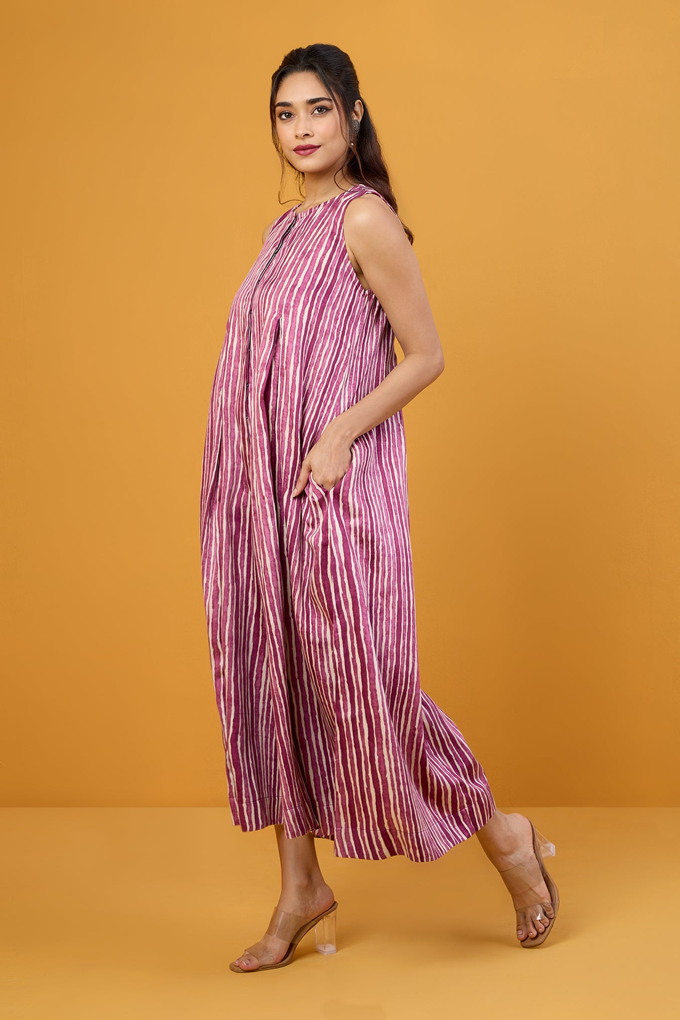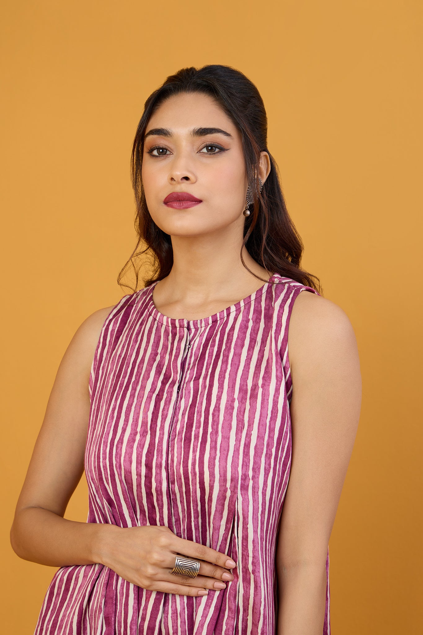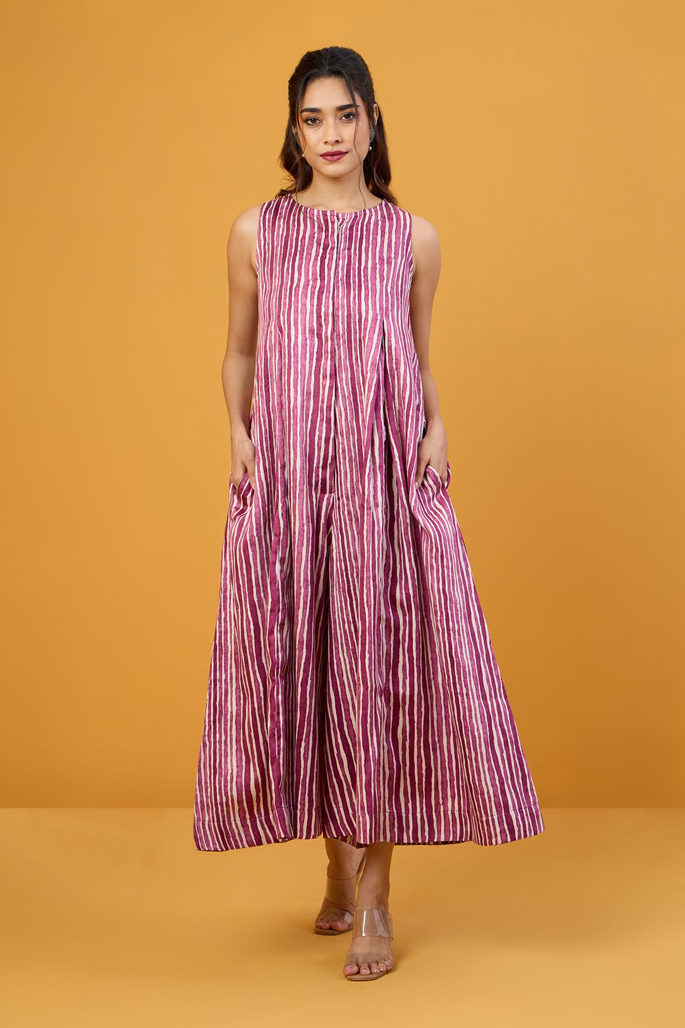Vivid Magenta Stripes Sleeveless Button Down Jumpsuit