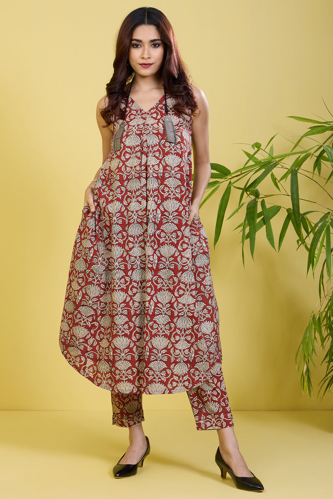 Co-ord Set Gentle Rose & Azure Long Kurta with Side Twist