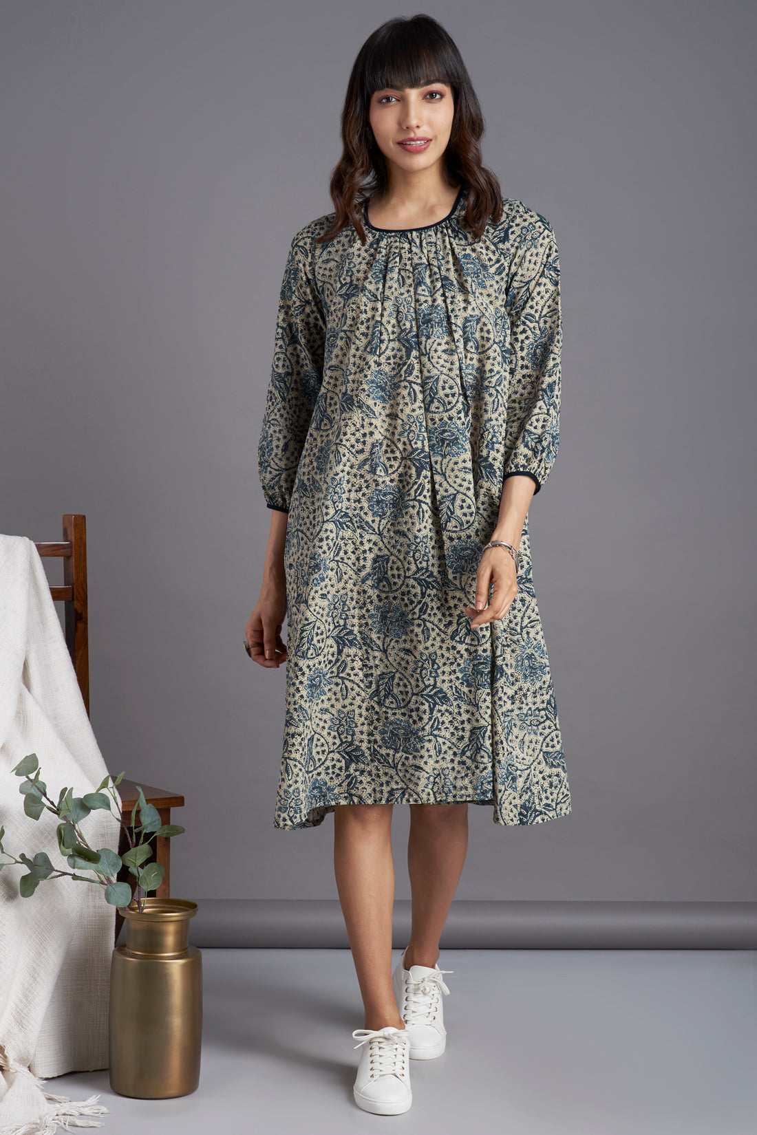 midi gather dress - marine magic & flowering vines