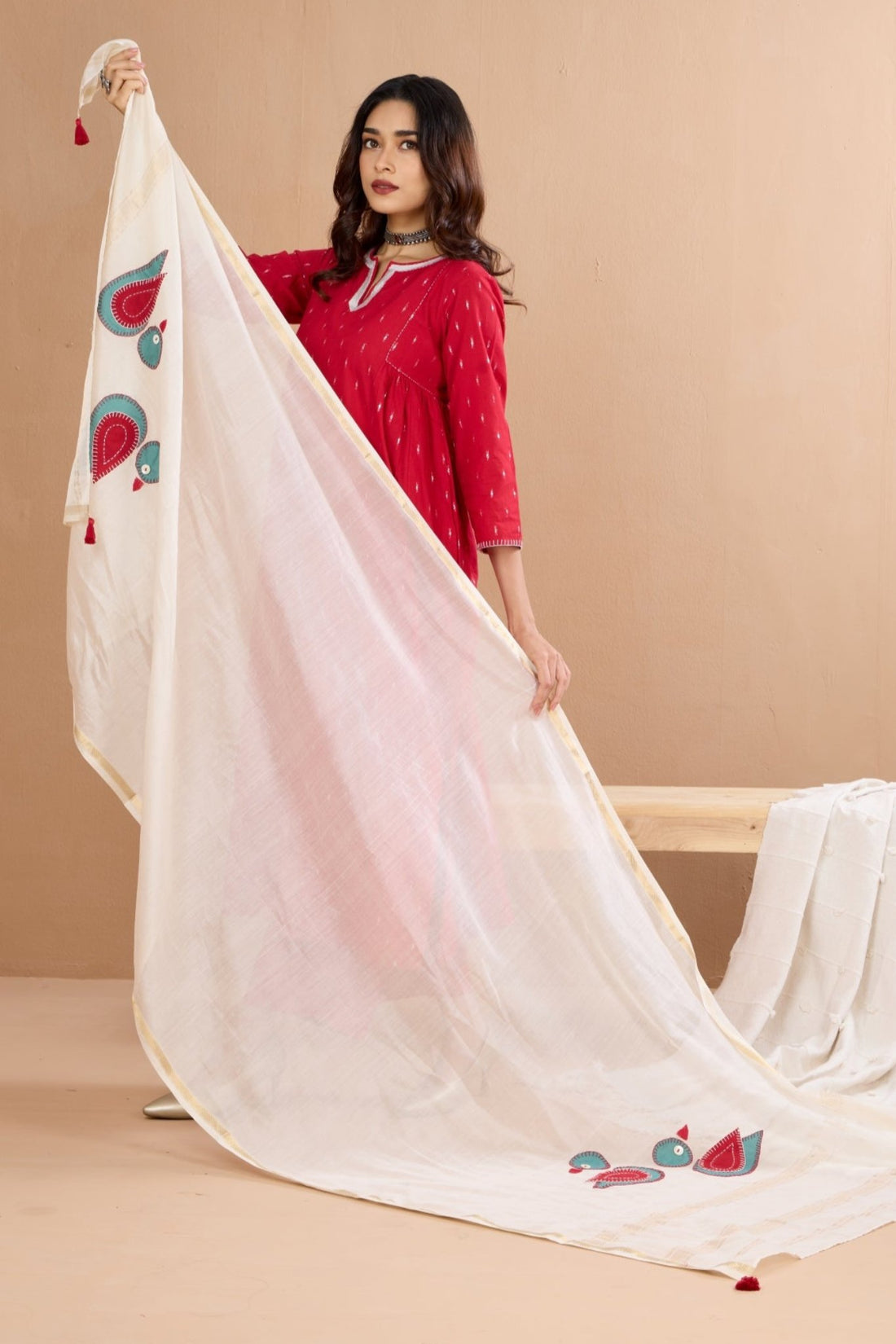 maati brings a curated collection of maheshwari dupatta with hand applique work fabric: handloom maheshwari length: 2.5...