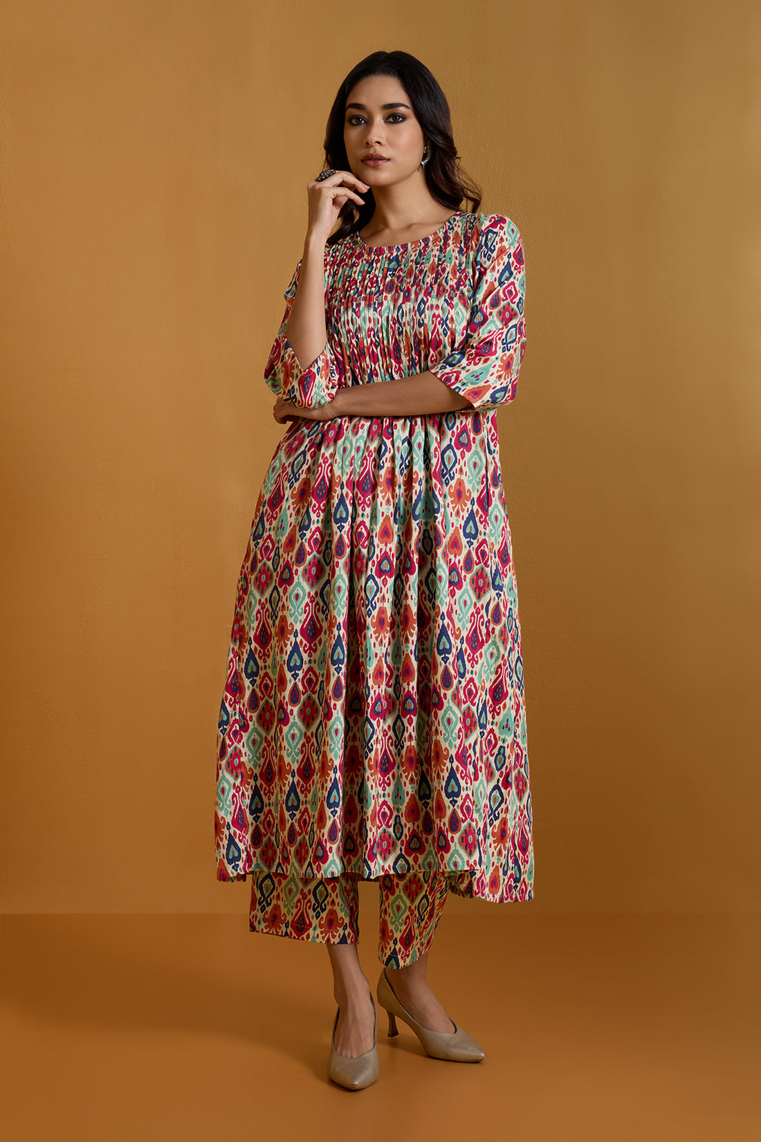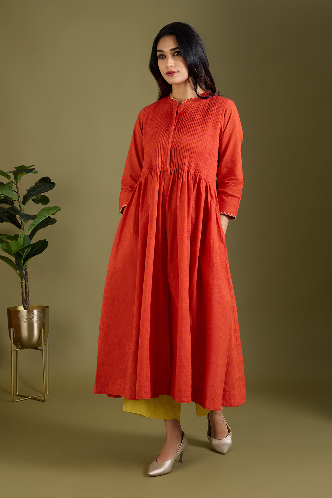 Check out Elegant dresses with pintuck accents, perfect for adding a touch of refinement to your wardrobe. Available in knee-length and anarkali styles, suitable for any occasion from casual outings to special events. Stylish tunics and tops adorned with delicate pintuck detailing. Perfect for pairing with jeans, skirts, or trousers for a chic, everyday look.