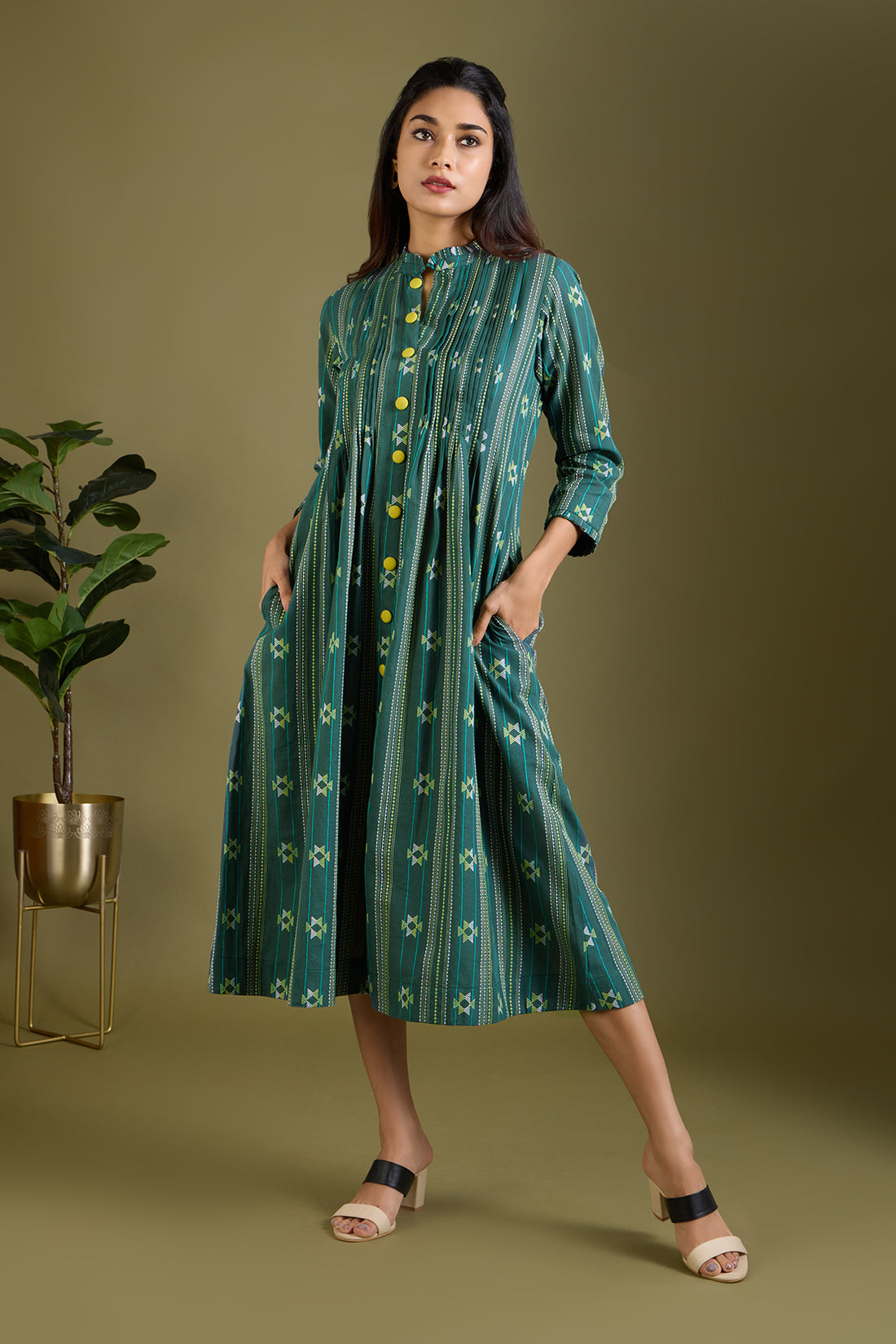 Sage Threads Pleated Neck Pintuck Dress