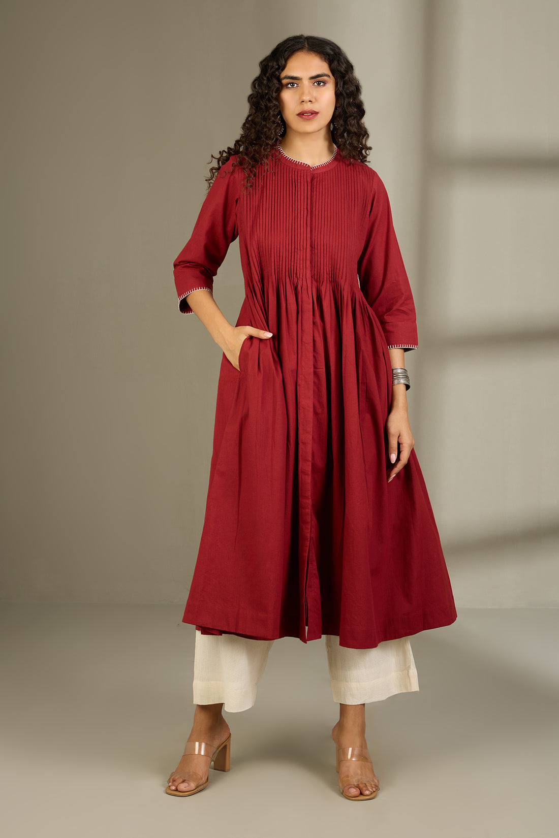 Beautifully tailored kurtas featuring intricate pintuck pleats, available in a variety of colors and fabrics.. Ideal for both casual and formal wear, offering a blend of comfort and sophistication.