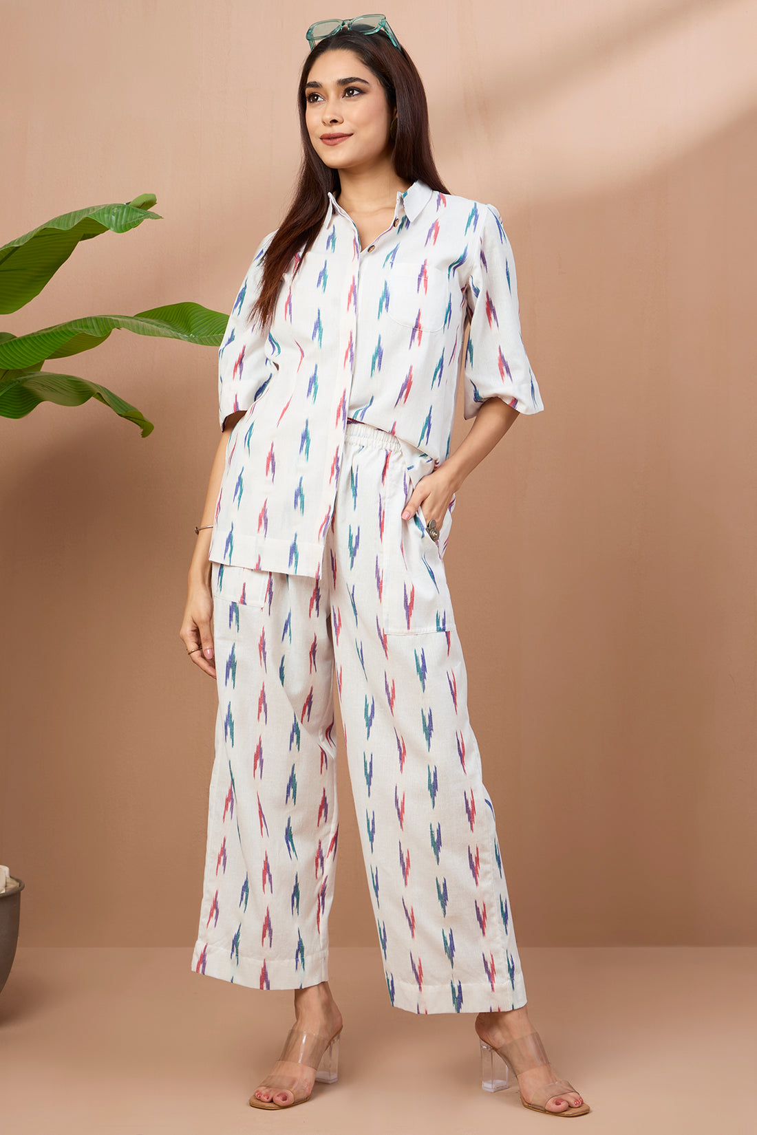 sleeveless white co-ord set with box pleat whispering white