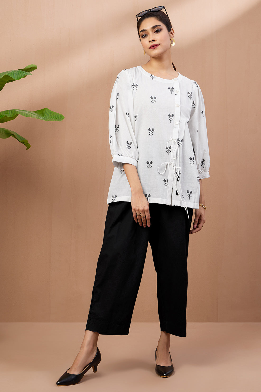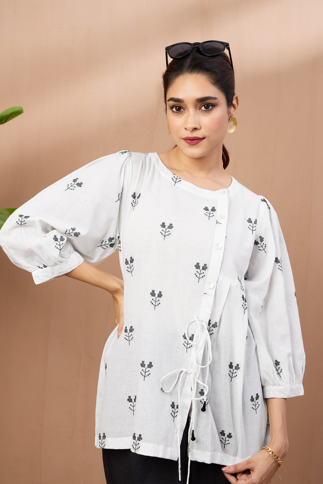 Monochrome Blooms Cotton Dori Detail Tunic