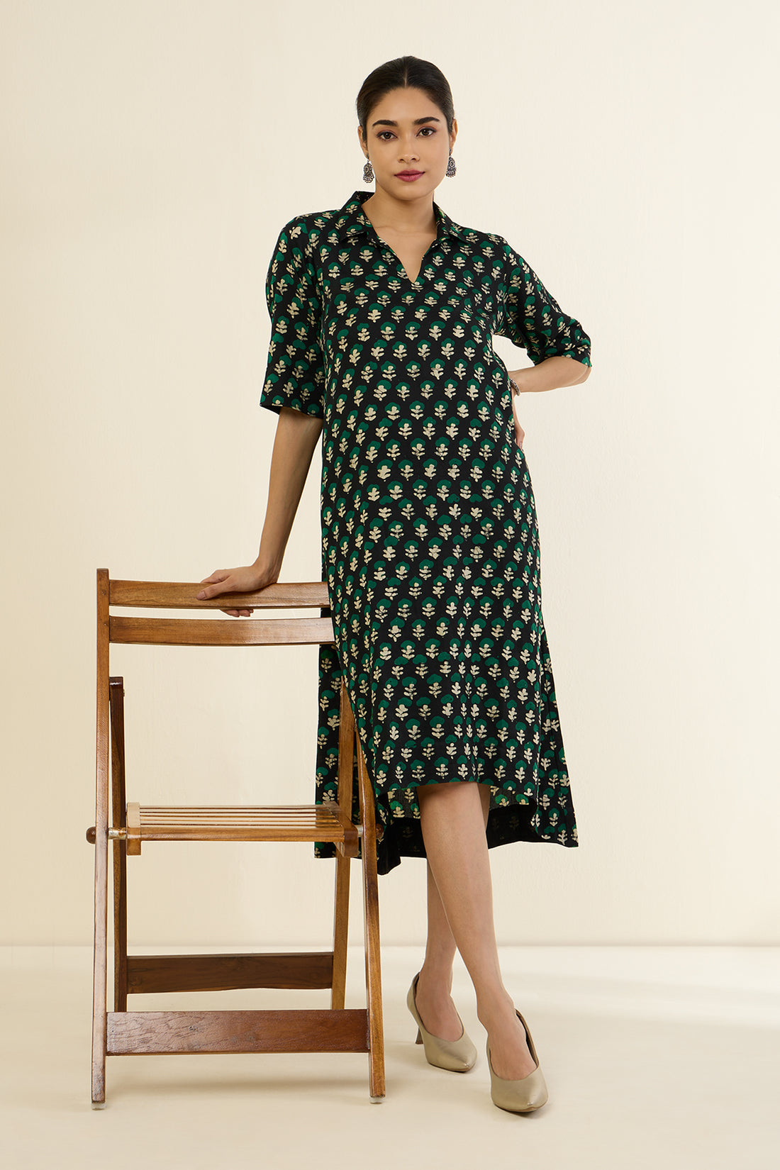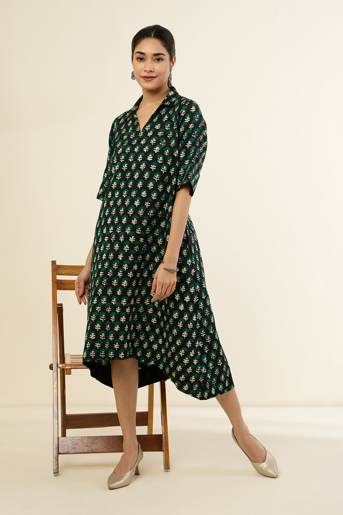 Botanicals Noir Bias Shirt Dress