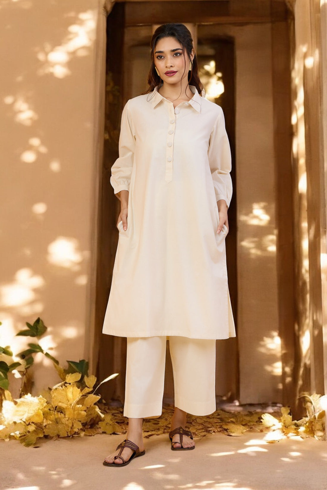 Ivory Moon Glow Organic Collar Kurta