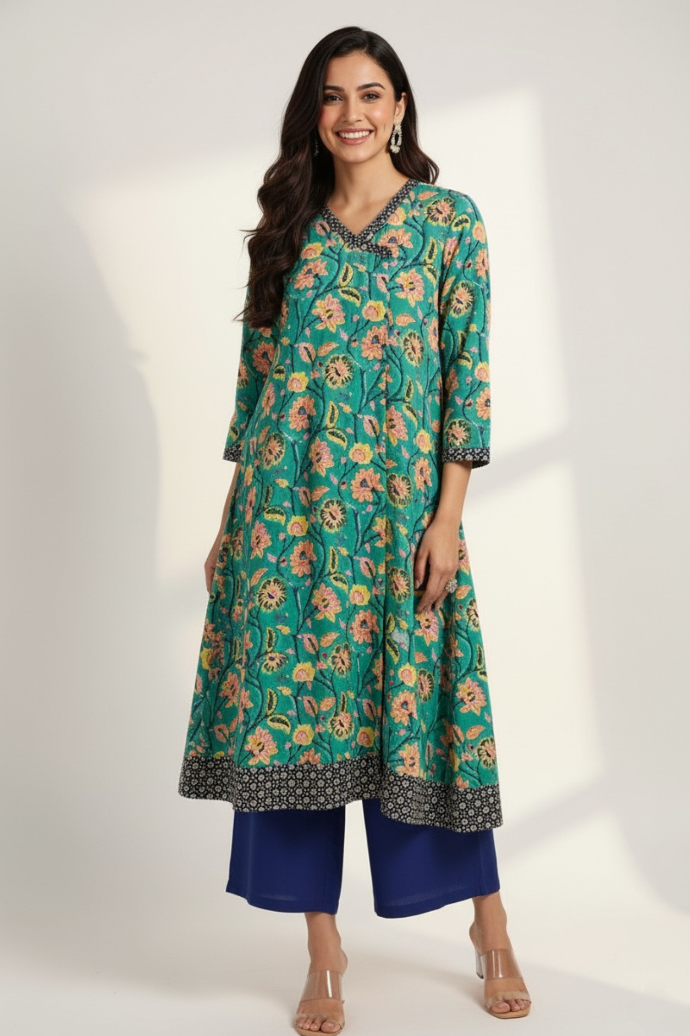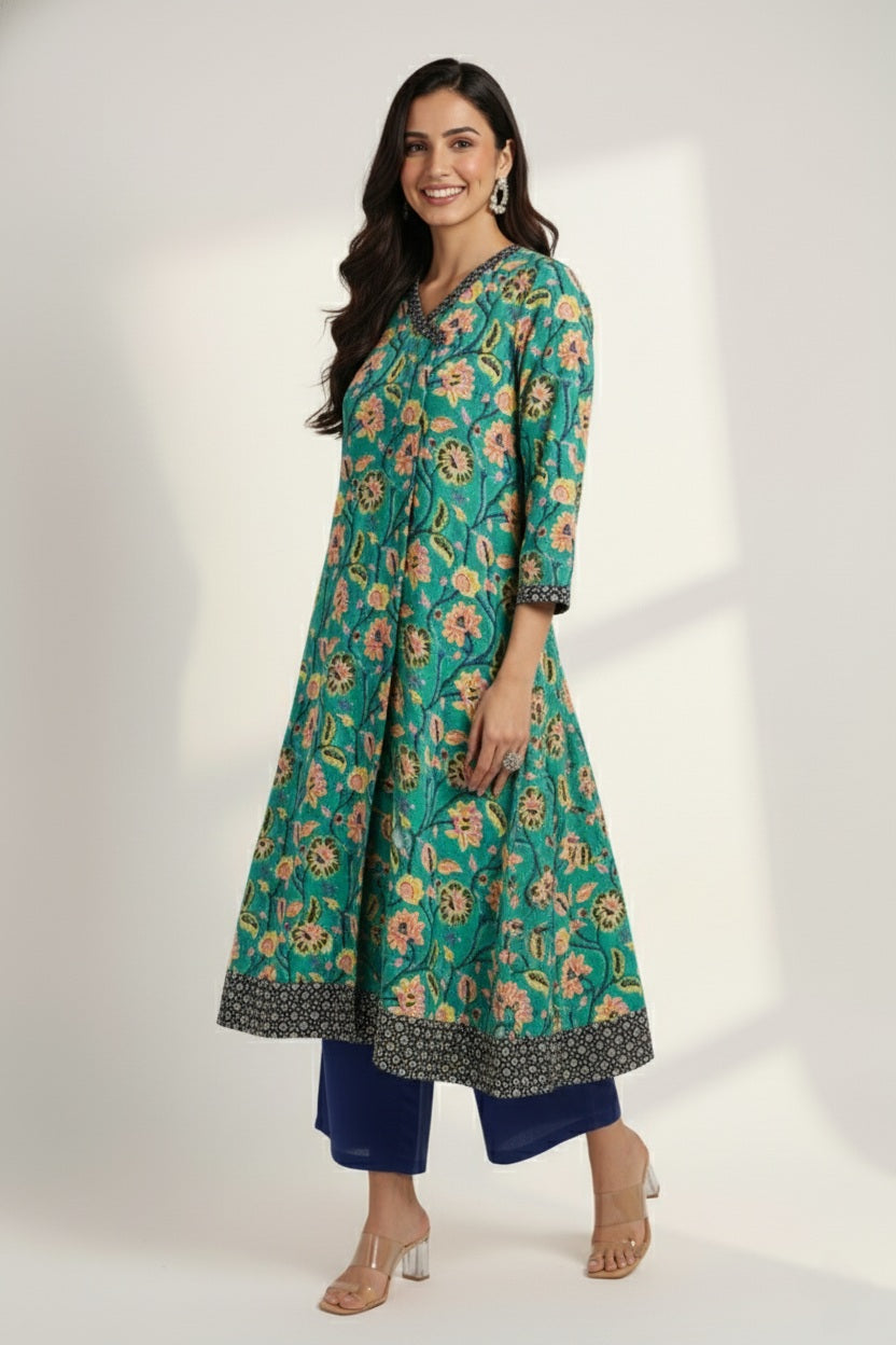 overlap mughal angrakha - aruba blue & sunlight on the garden