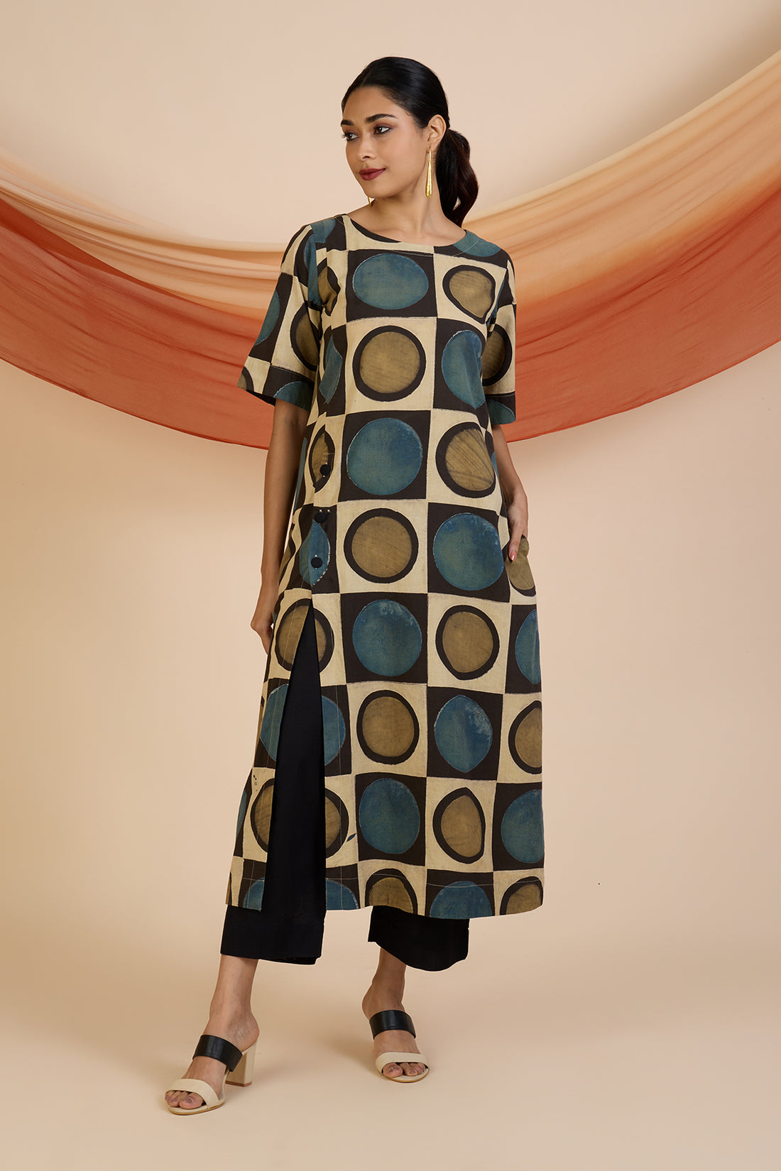 Henna Dust Indigo Ajrakh side button adjustable slit kurta