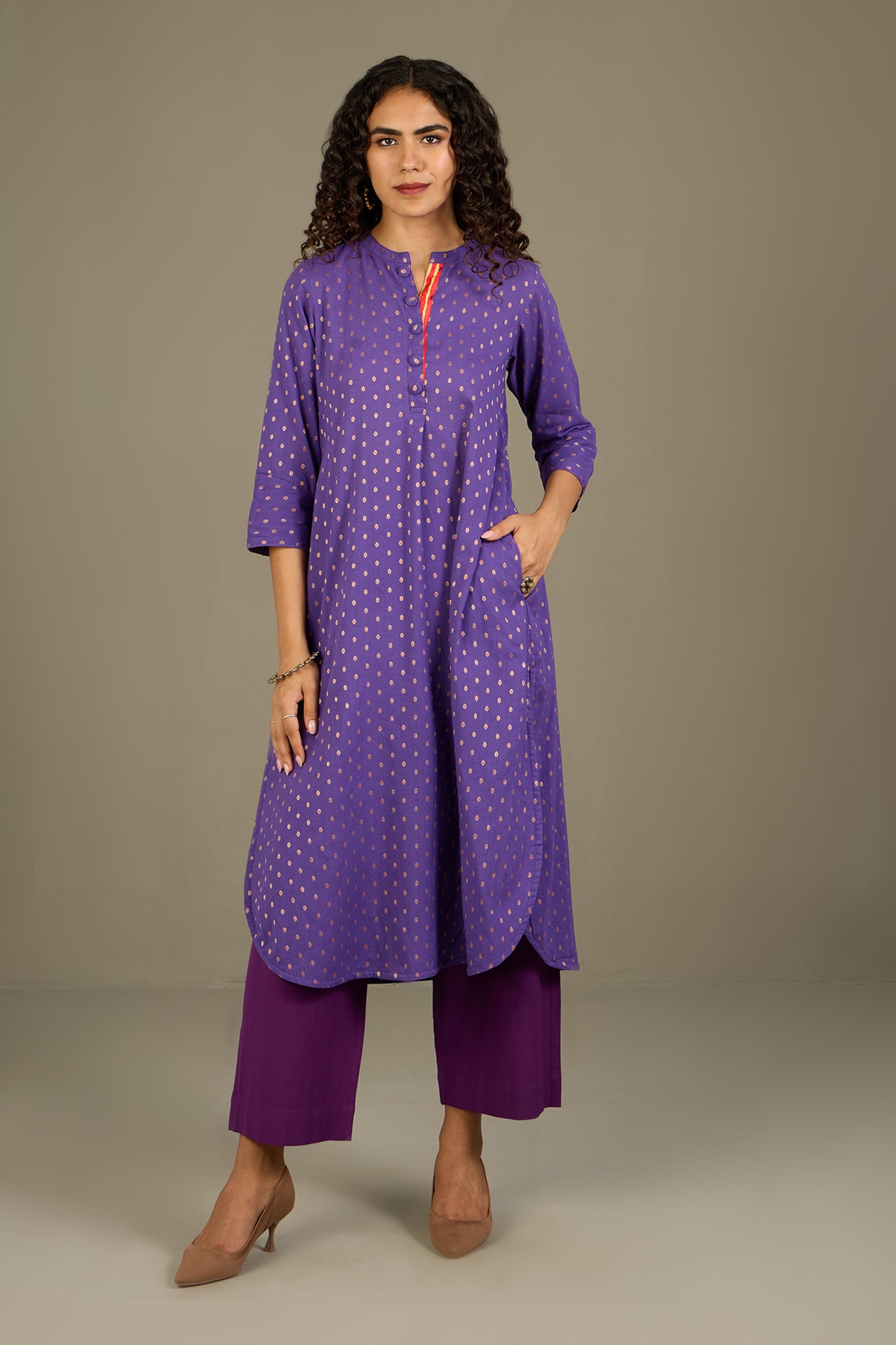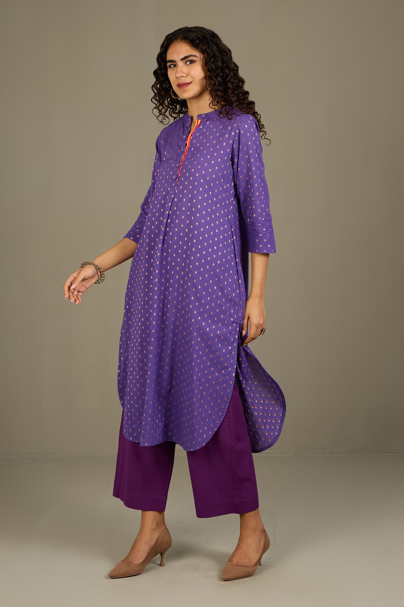 Gilded Violet Stand Collar Kurta with Round Hemline
