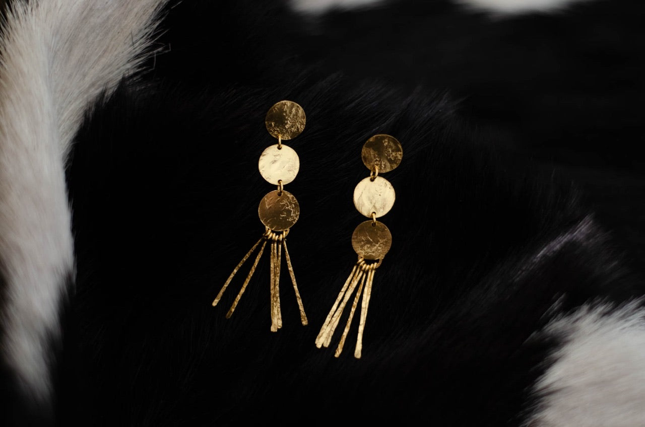 emitting a boho charm, all the pieces are carved out of brass & soaked in gold polish. the pieces create the right balance of metallic and earthy tones.these earrings are here to make a statement.