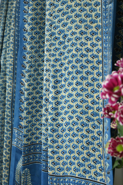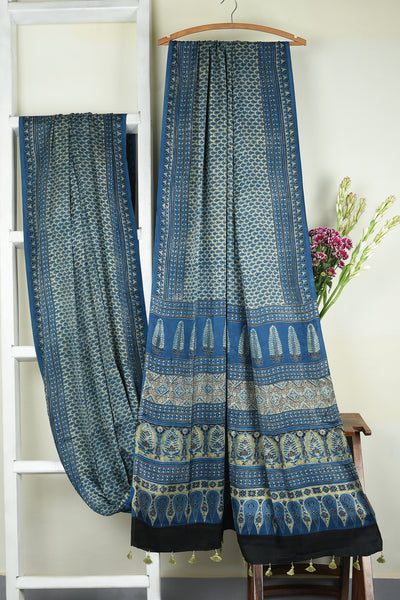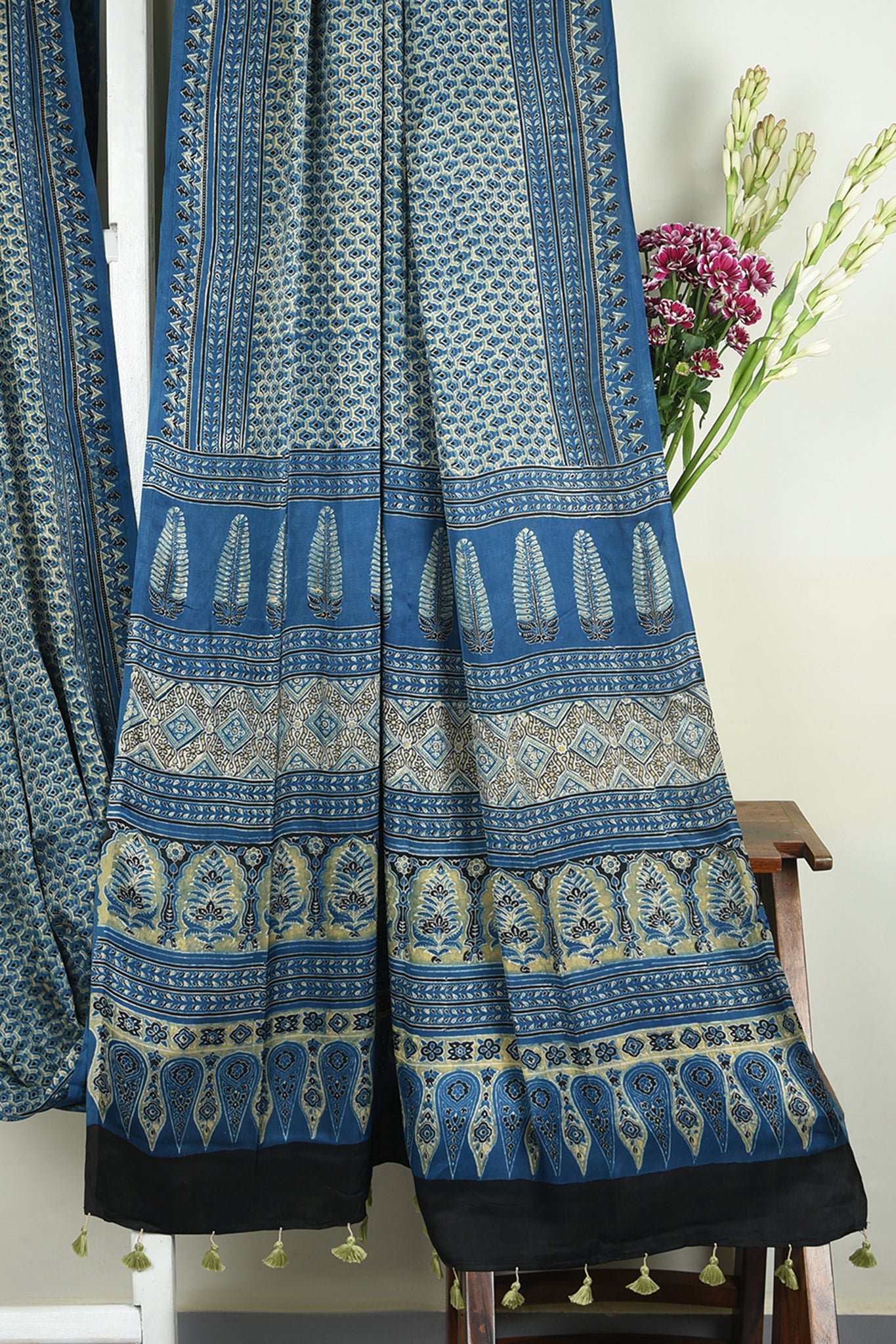 ajrakh modal silk sarees - mughal garden & indigo treasures
