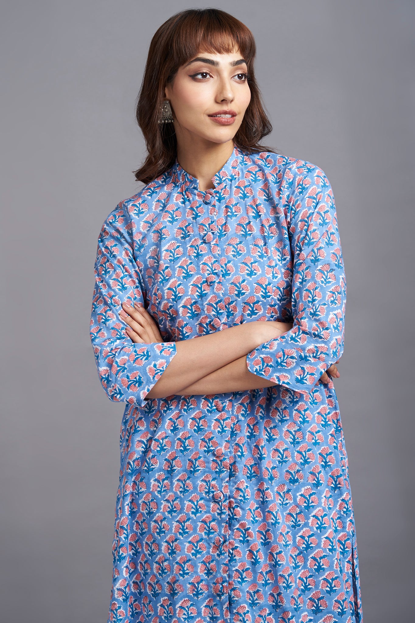 Inspired by the looks of power dressing this beautiful kurta is handcrafted beautifully by our karigars for the perfected fit! A straight kurta with handmade buttons, slits on sides & in front for a flattering fit. We absolutely love this feminine, effortlessly chic & timeless kurta! Style it with your favourite pair of heels & silver jewellery for a chic look. . The cotton fabric is sourced from Jaipur, stitched & hand finished at our atelier in Mumbai, Maharashtra. Accentuated with long sleeves for elegant styling, the kurta is perfect to wear to work all year around or for special meetings for the power look! Style the kurta with our pants available in same hues separately!