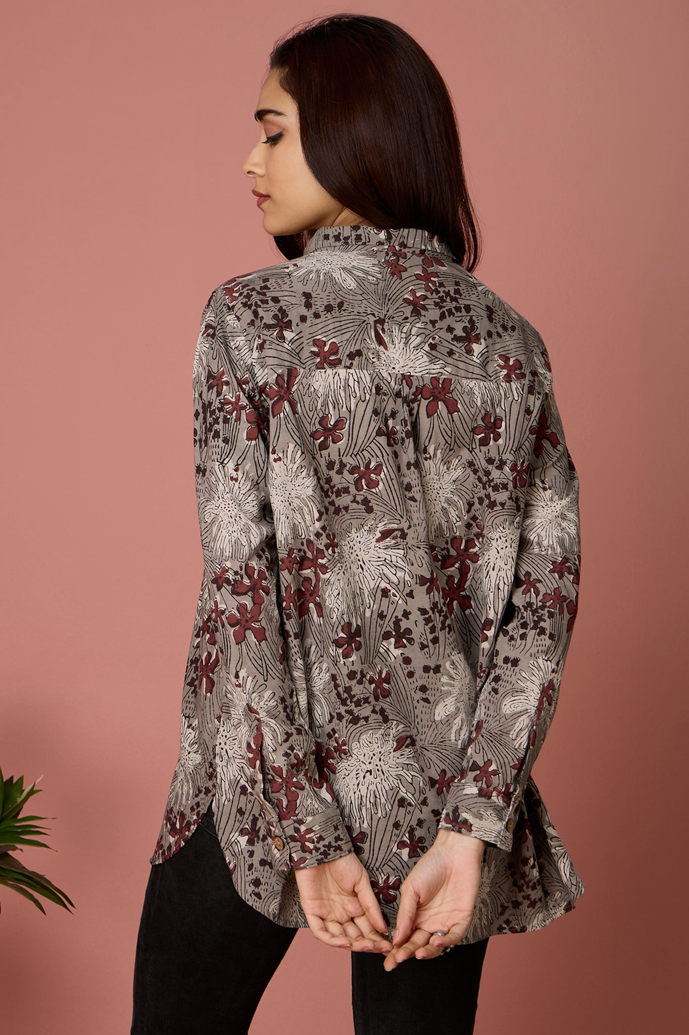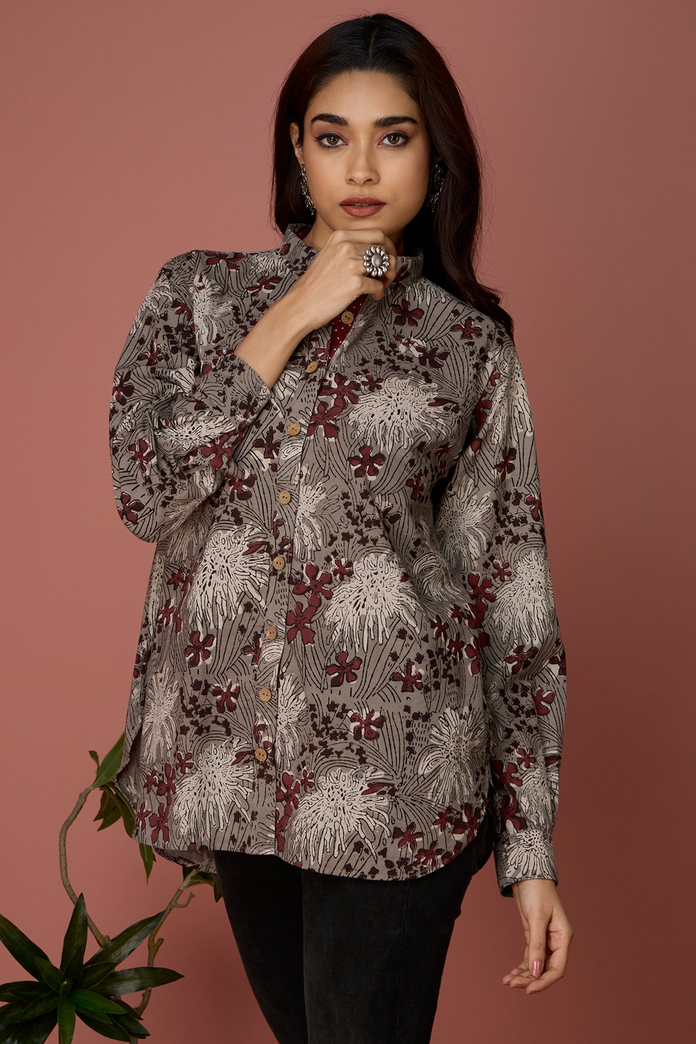 Embrace the versatility of this handblock-printed cotton shirt, adorned in hues of grey with a hint of red for a distinctive touch. Featuring a patch pocket and comfort sleeves, it effortlessly combines functionality with style. Handcrafted in breathable cotton fabric with perfected tailoring, it offers a timeless look ideal for transitioning seamlessly from work to festive gatherings. Elevate your style by pairing it up with tailored trousers for a polished look, or dress it down with denim for a chic and relaxed ensemble. The artful blend of comfort and meticulous craftsmanship makes it a wardrobe staple for any occasion.