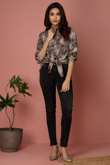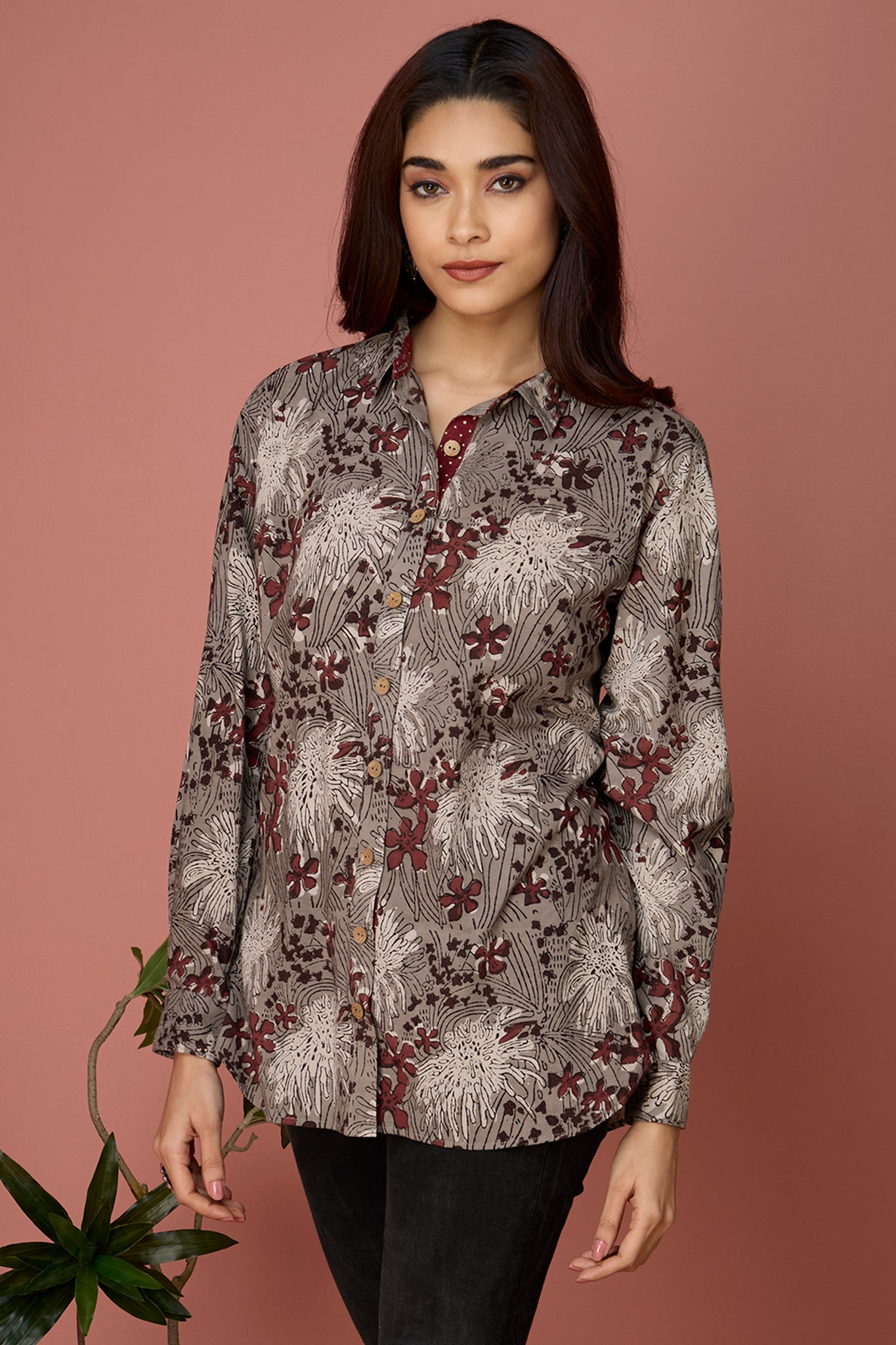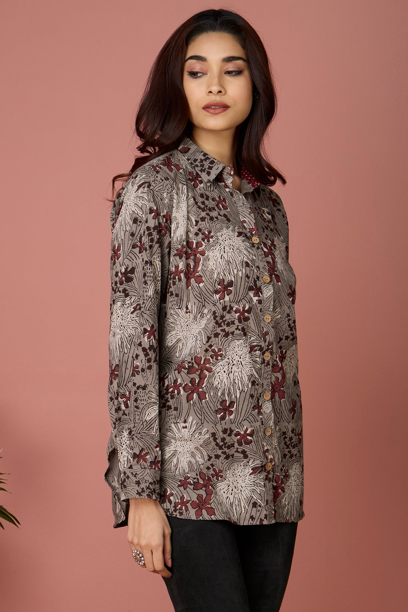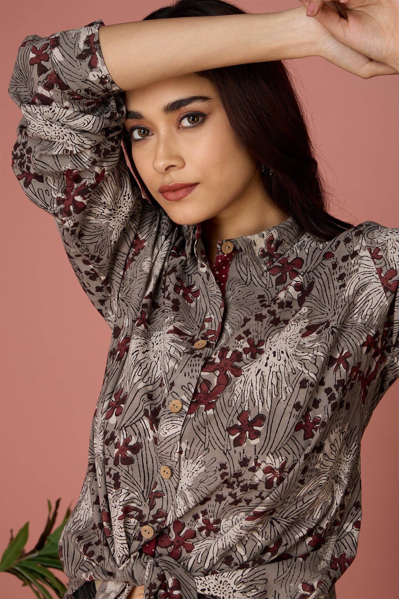 • Craftsmanship:  Handcrafted from soft cotton in subtle blended hues of grey & red in handblock print, this shirt is perfect to wear all year round.