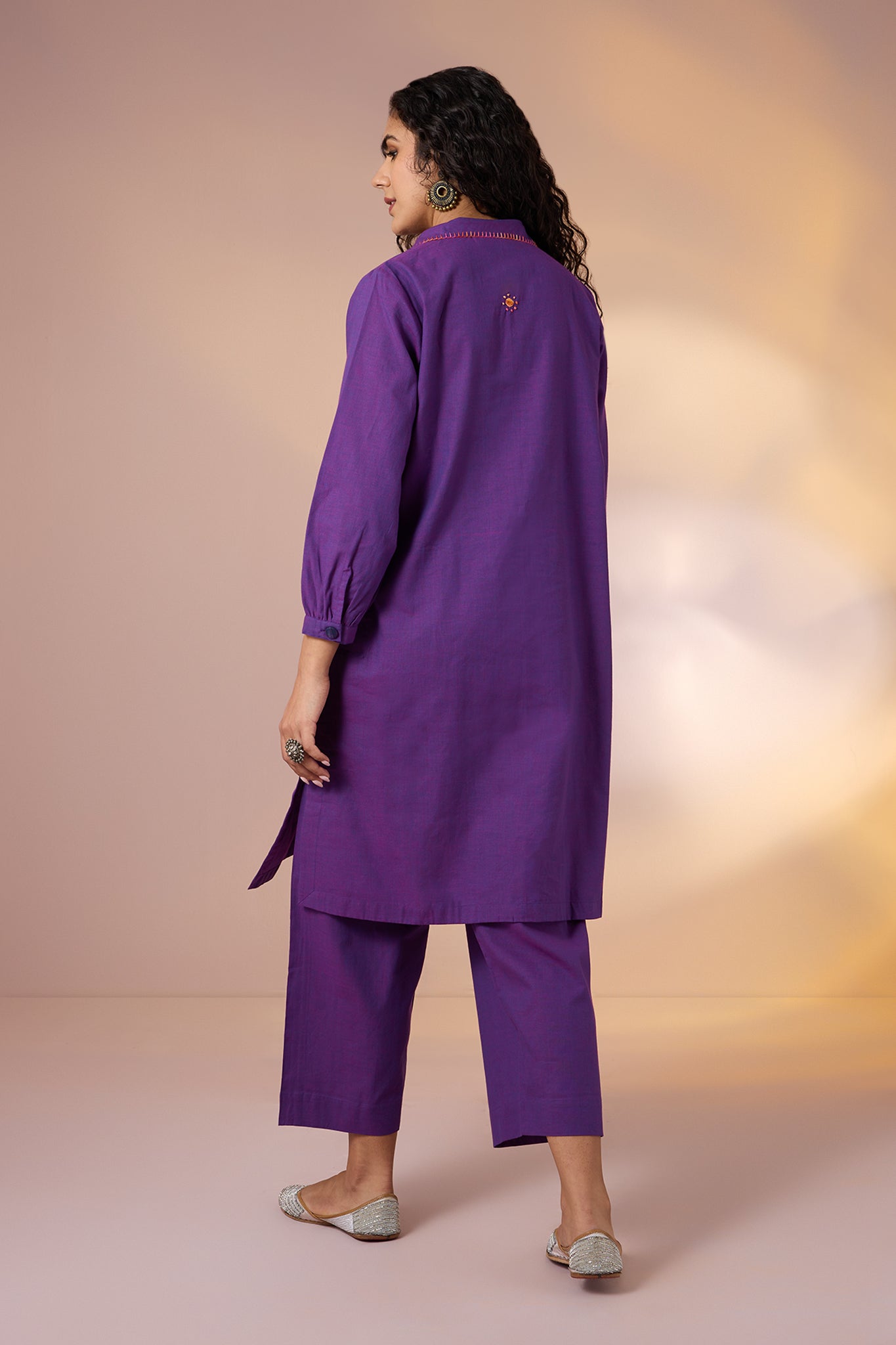 Co-ord Set Amethyst Hue Cotton Collar Kurta & Pants