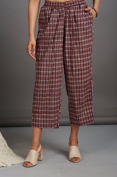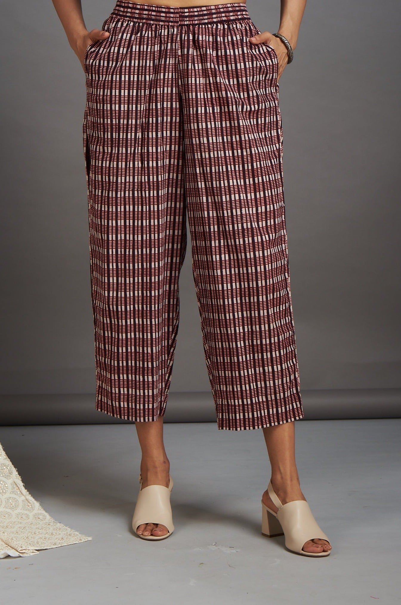 comfort fit ankle length narrow pants  - red and checks