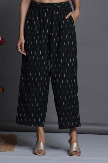 elasticated tie-up plain cotton grey yellow ikat pants with pockets, perfect coordinate for all clothing!