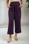 Comfort fit cotton pants - DEEP purple woven cotton