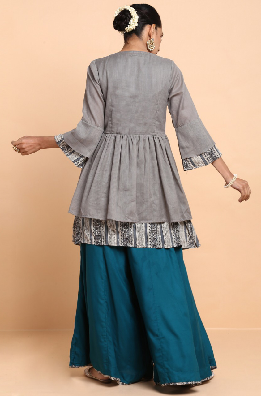 ensemble - peplum top + palazzo - harbor grey & rama green