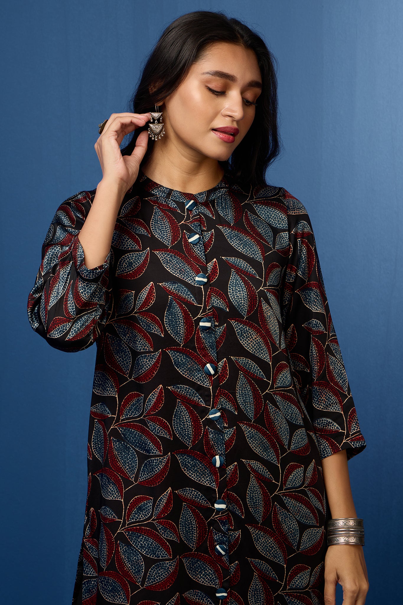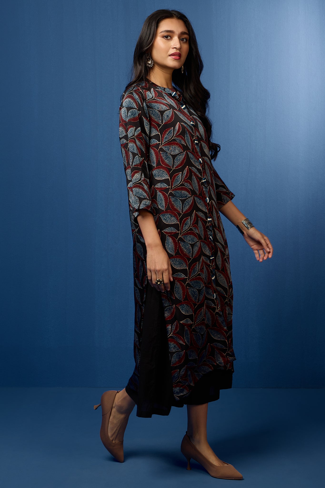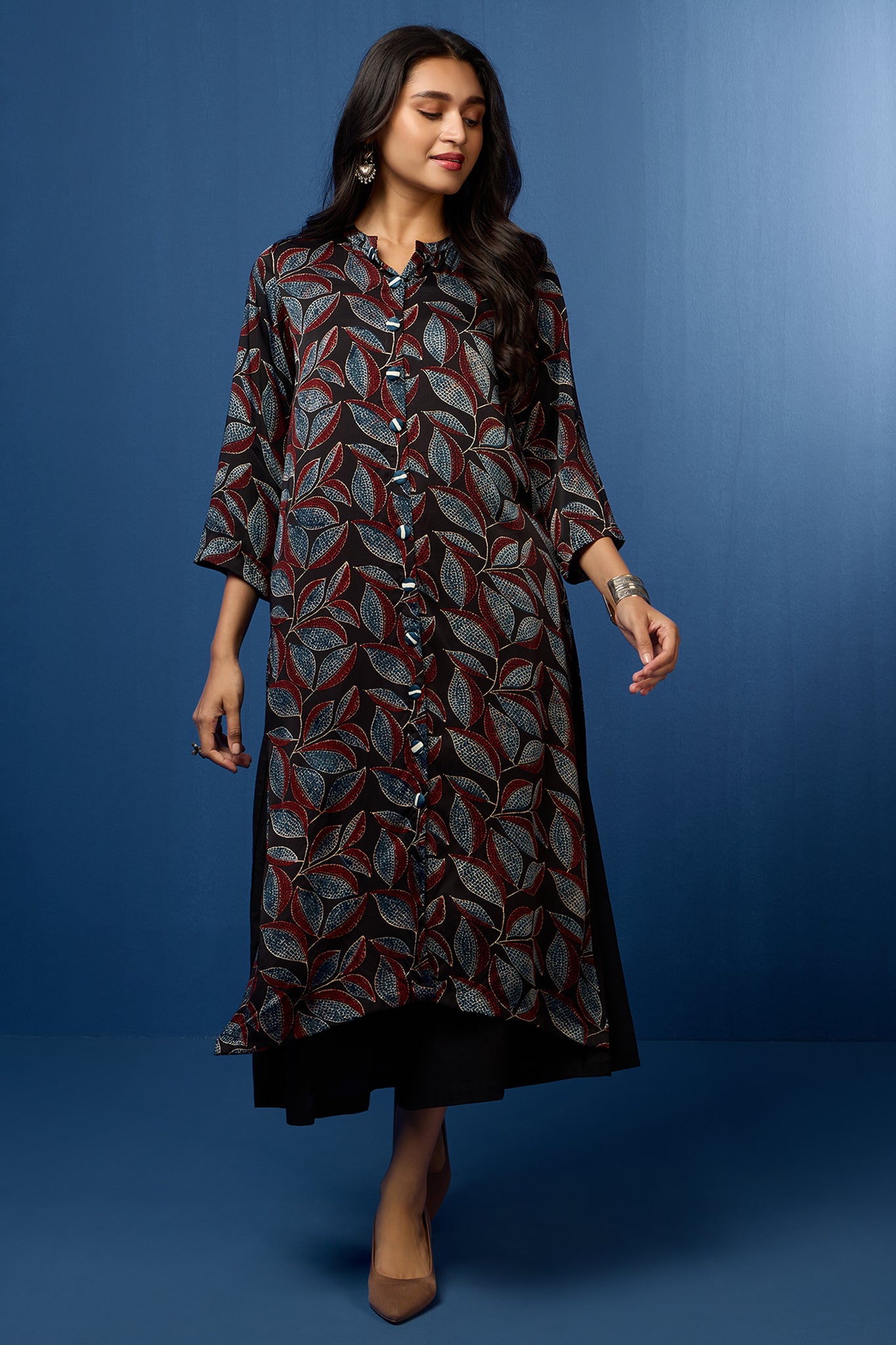 formal button down kurta - raven feather & auburn leaves