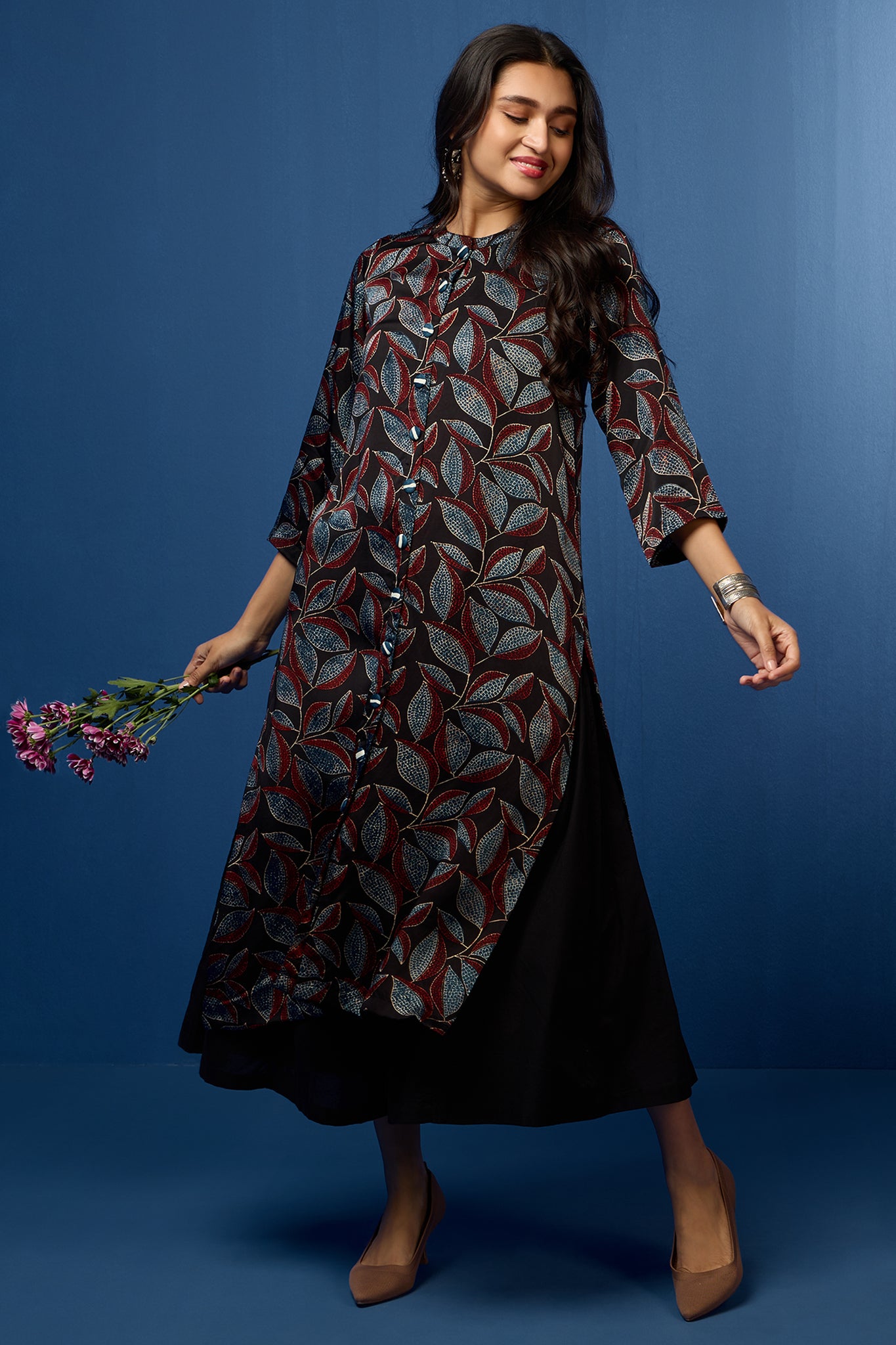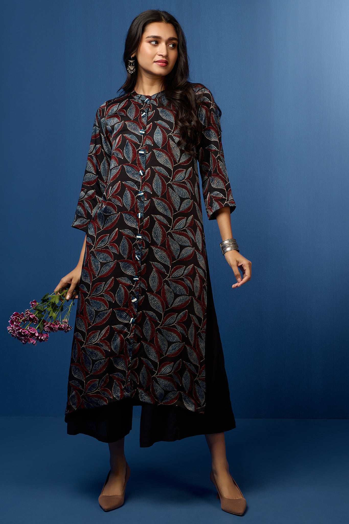 Beautifully finished by our skilled women artisans at our Mumbai atelier, each piece reflects our commitment to exceptional craftsmanship and style. Embrace the theme that defines Maati Clothing—versatility and everyday luxury—by adorning yourself in the "Raven Feather & Auburn Leaves" ensemble. Elevate your wardrobe with this unique blend of tradition, artistry, and modern elegance.