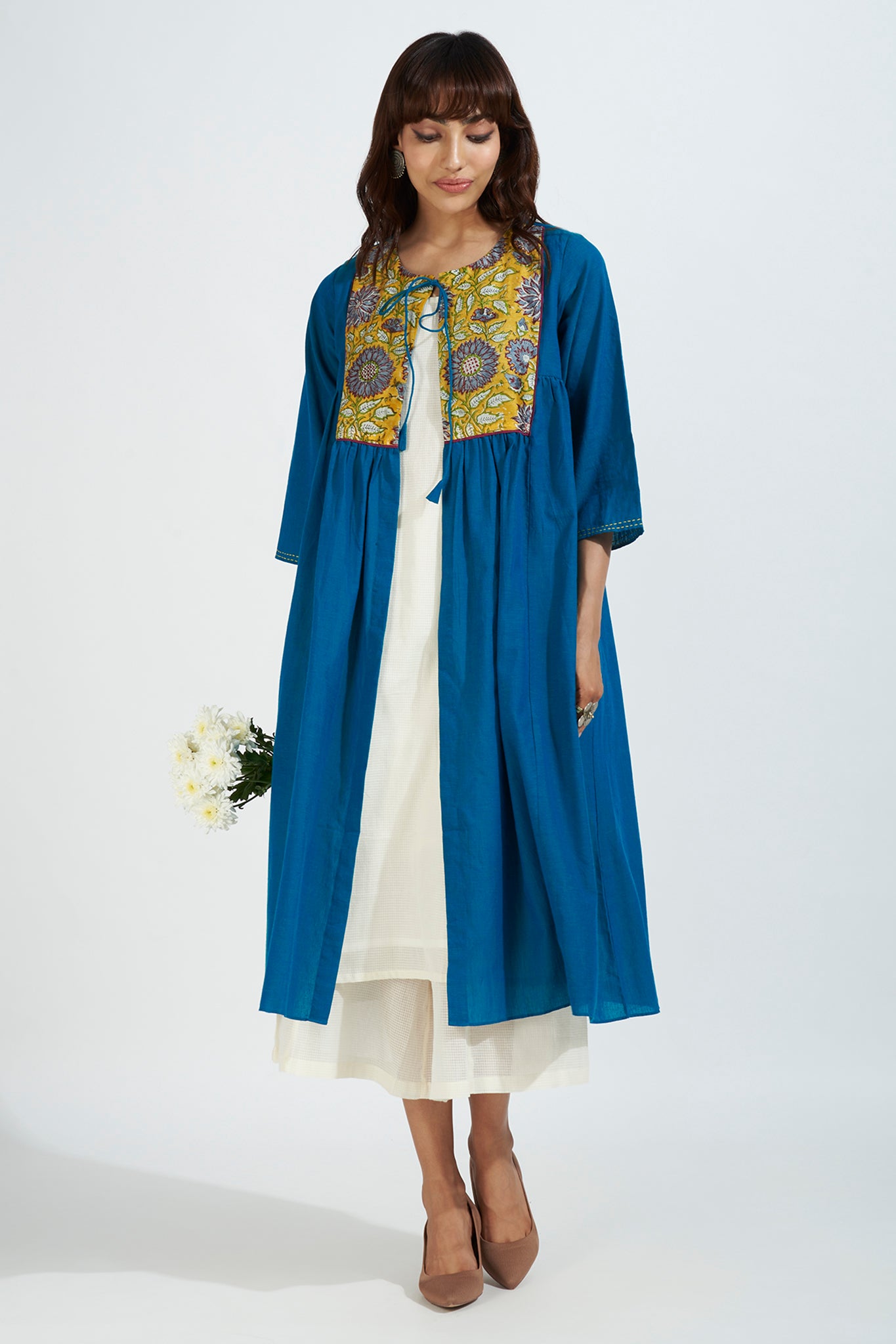 gather jacket with chanderi yoke - radiant peacock & golden bloom