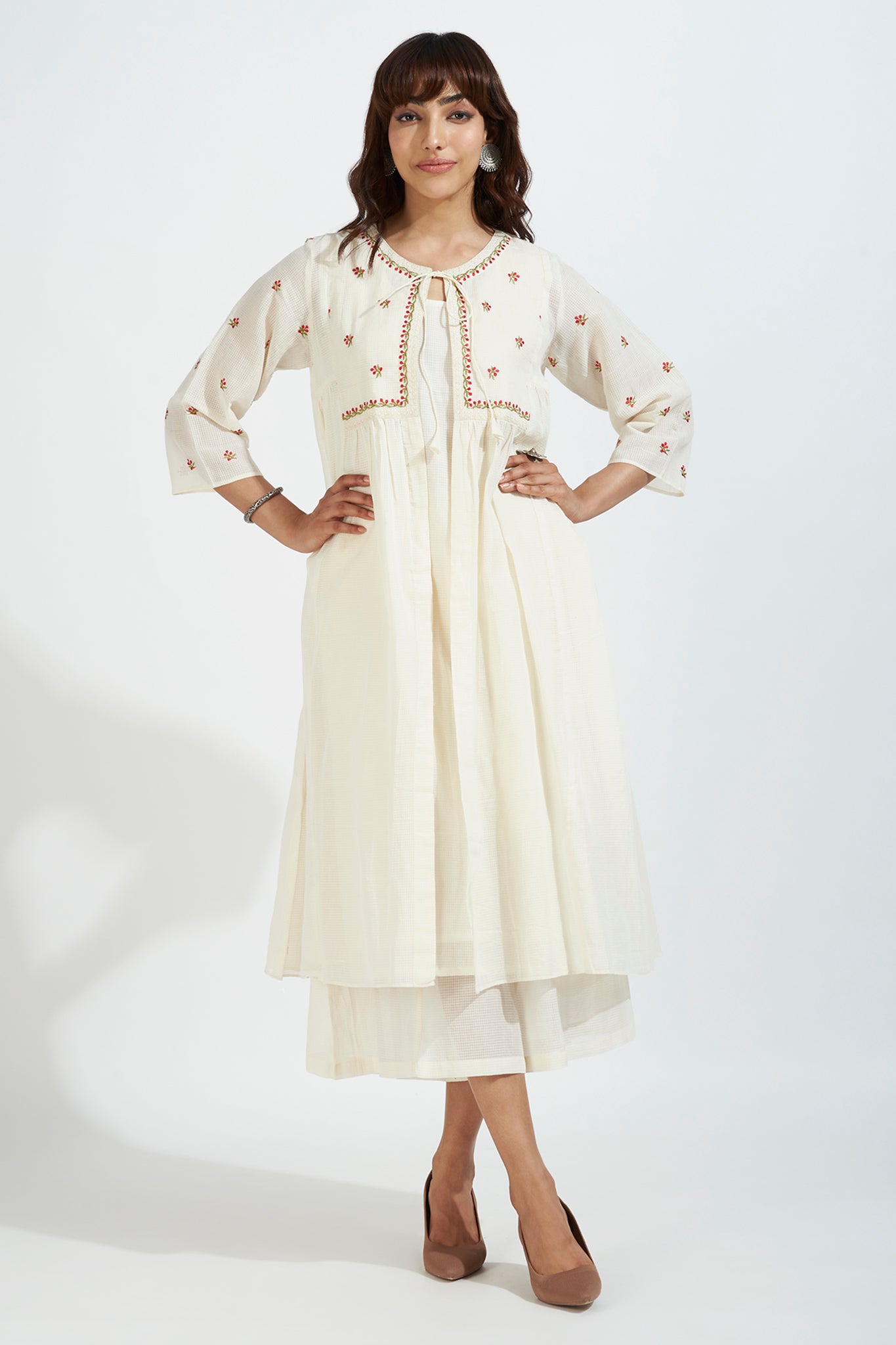 Versatile in every sense, you can effortlessly dress down this overlay with your favorite pair of denim and brogues for a chic yet relaxed vibe. Alternatively, embrace its elegance and wear with co-ordinated kota sleeveless inner and culottes for a formal occasion.