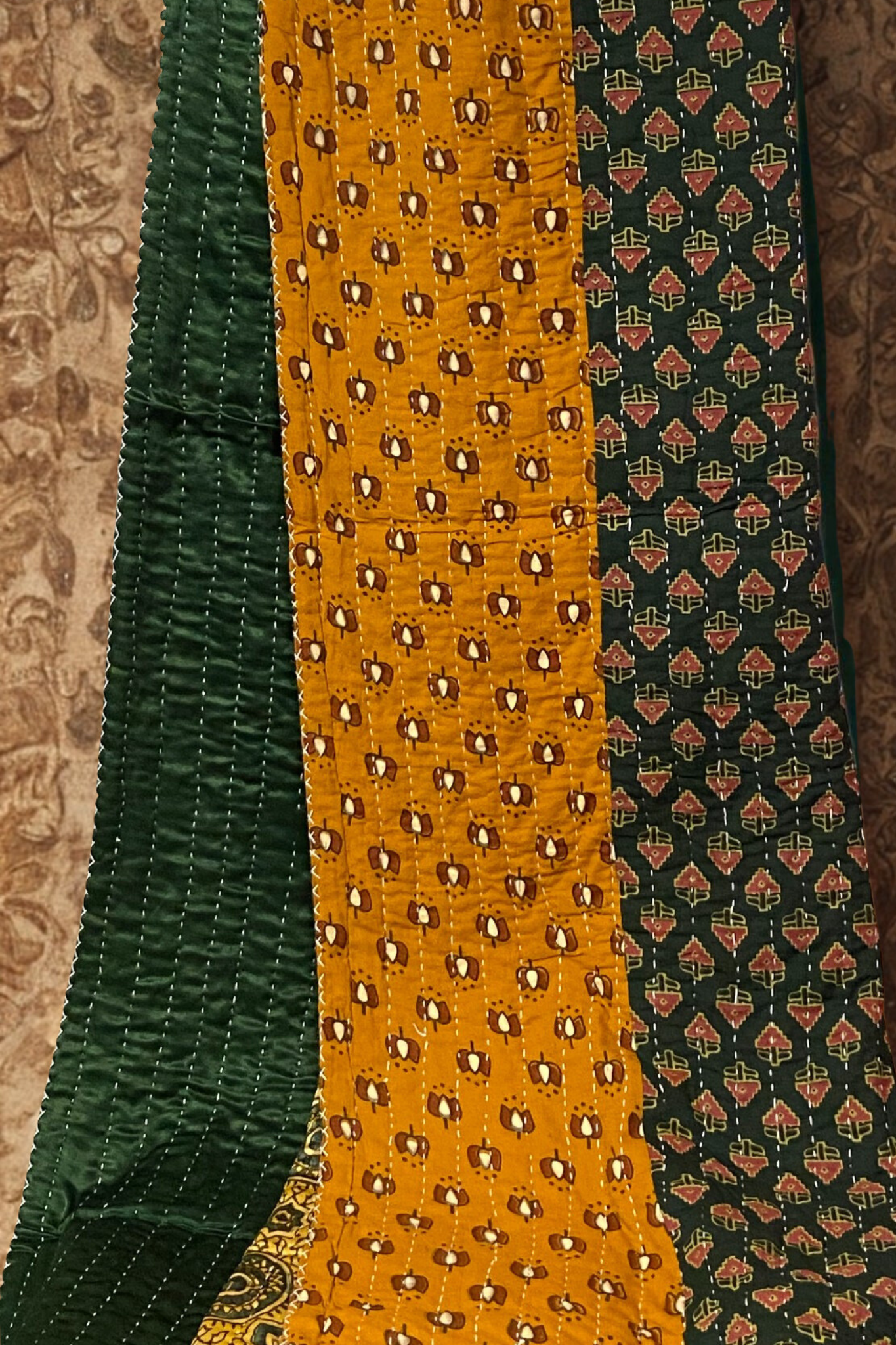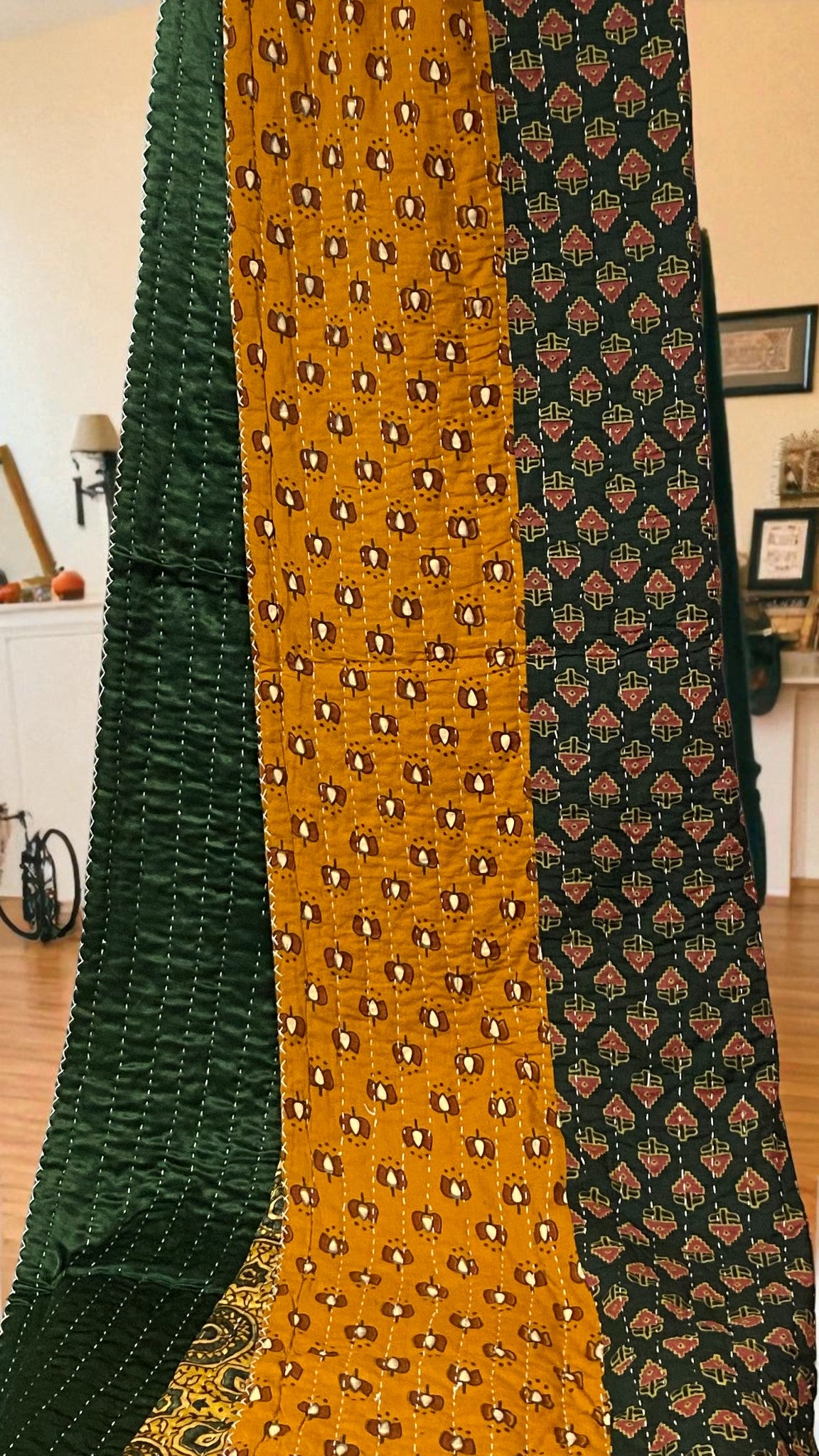 handcrafted mashroo single quilt with filler - green & sun kissed