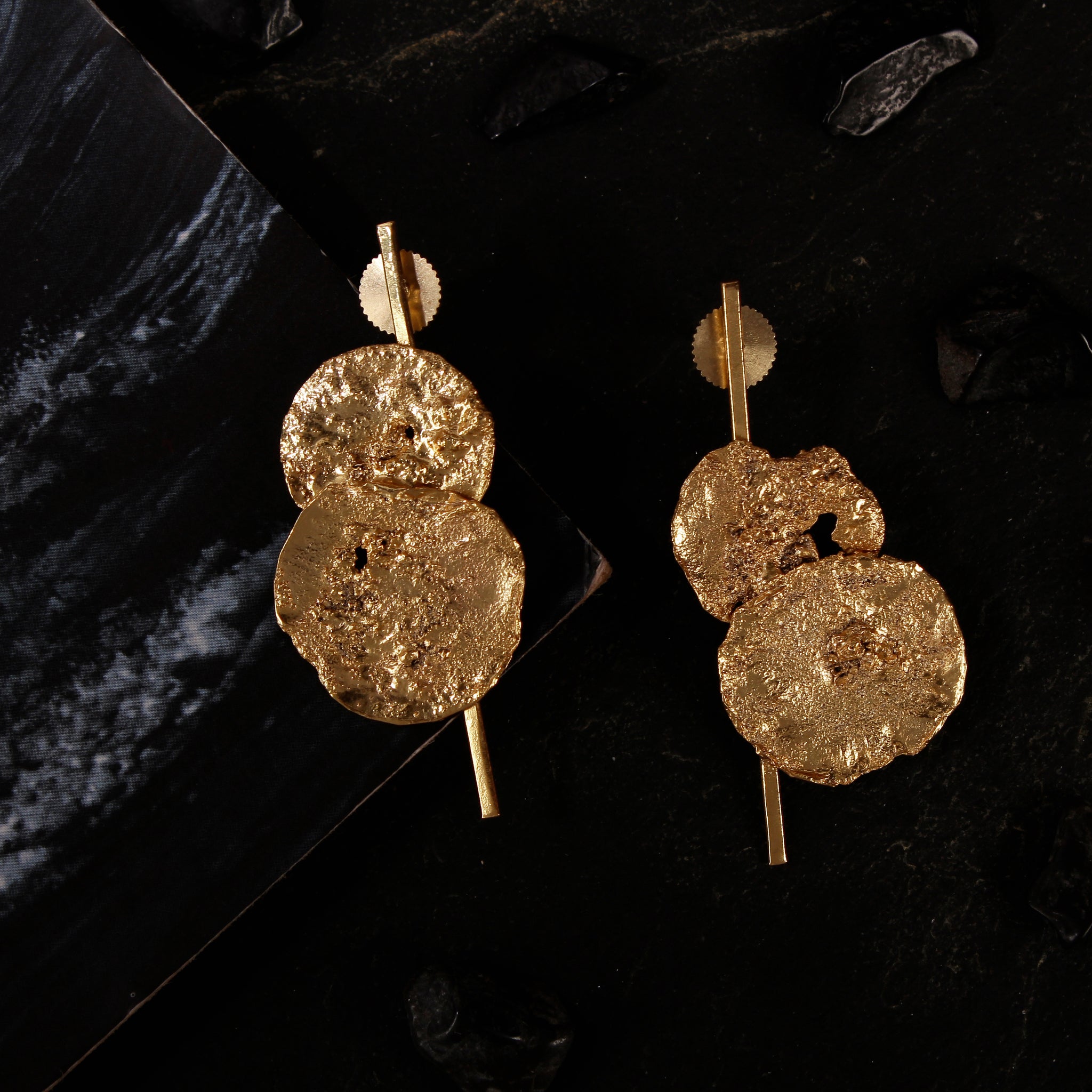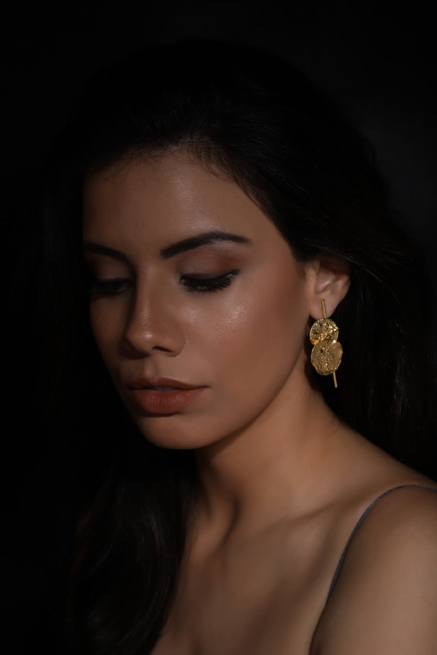 emitting a boho charm, all the pieces are carved out of brass & soaked in gold polish. the pieces create the right balance of metallic and earthy tones.these earrings are here to make a statement.