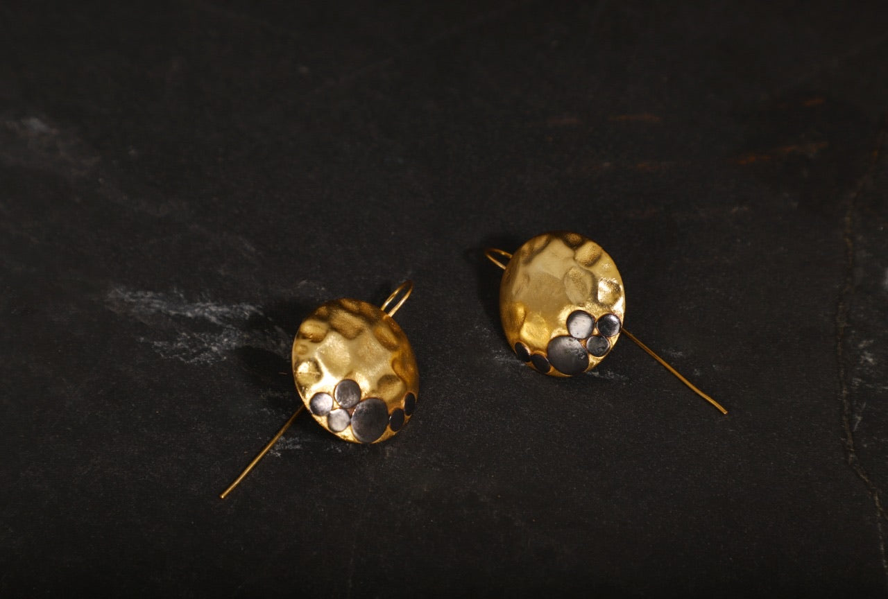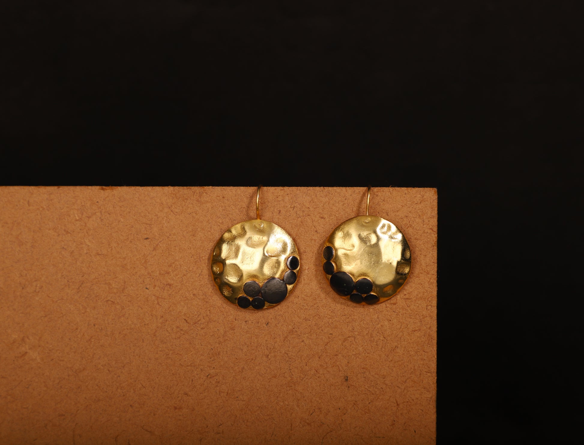 emitting a boho charm, all the pieces are carved out of brass & soaked in gold polish. the pieces create the right balance of metallic and earthy tones.these earrings are here to make a statement.
