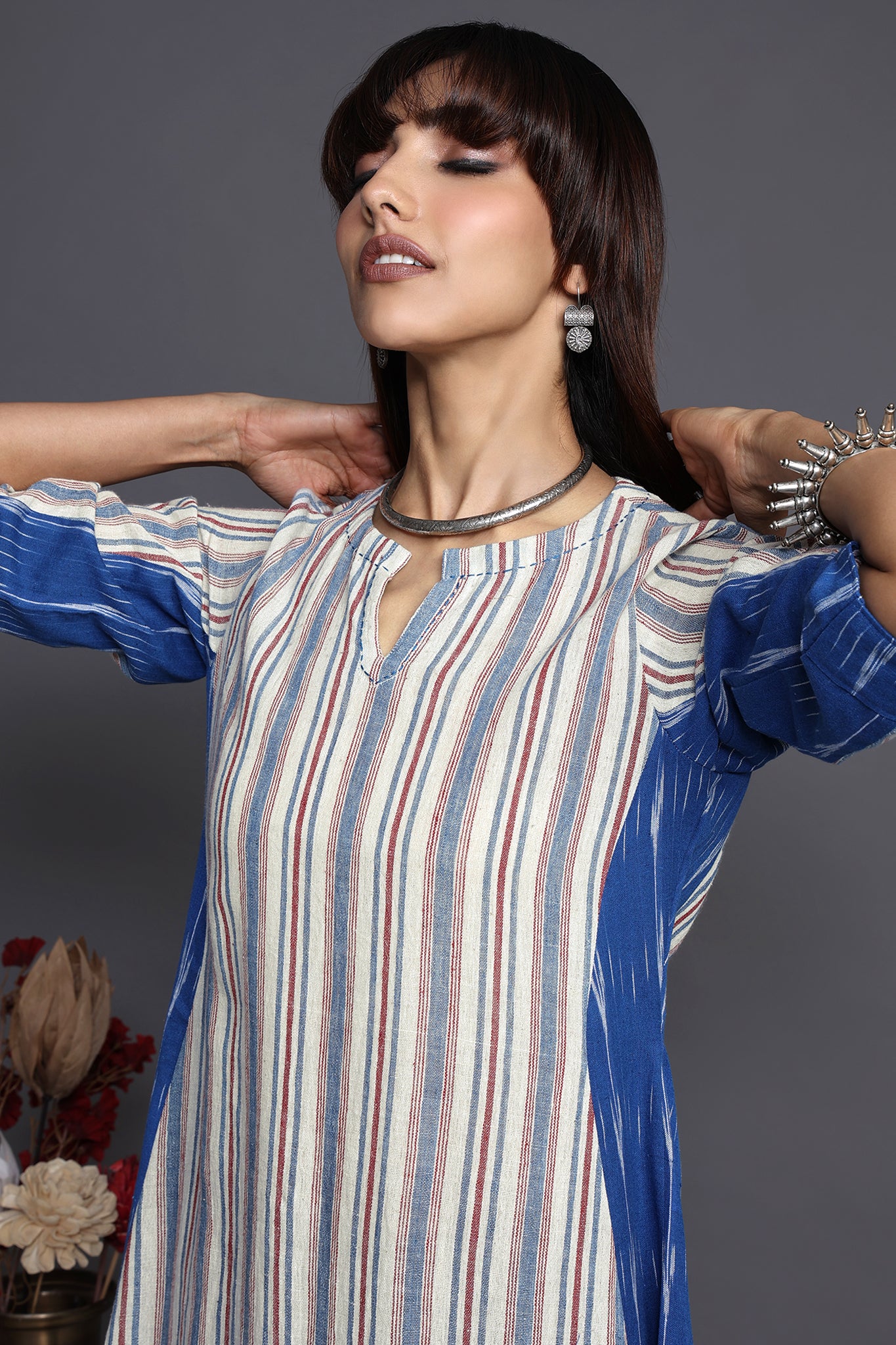 Versatile for day or evening wear, pair it with indigo pants or denims and heels for a chic daytime look or team it up with a denim jacket and sneakers for a fun evening ensemble. Kala cotton is 100% organic, sustainable, and free of pesticides or chemicals, adding to the distinctive character that makes each piece beautiful and unique. The handwoven stripes and grids, combined with minimal hues, give the fabric a distinct charm.