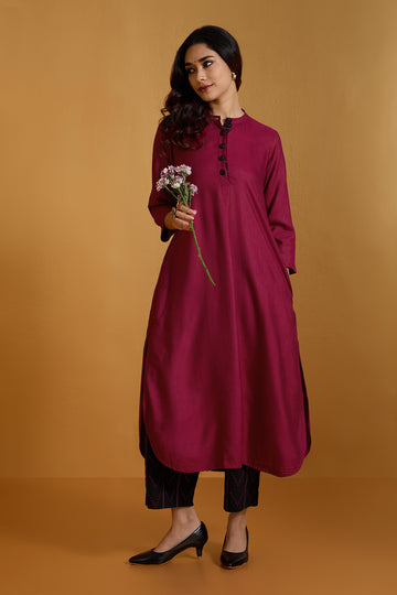 Opulent Magenta Luxe Silk Stand Collar Kurta