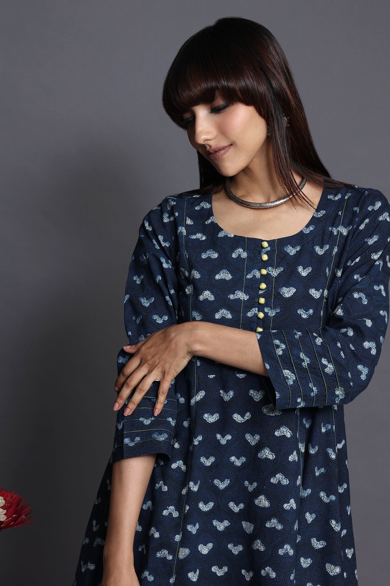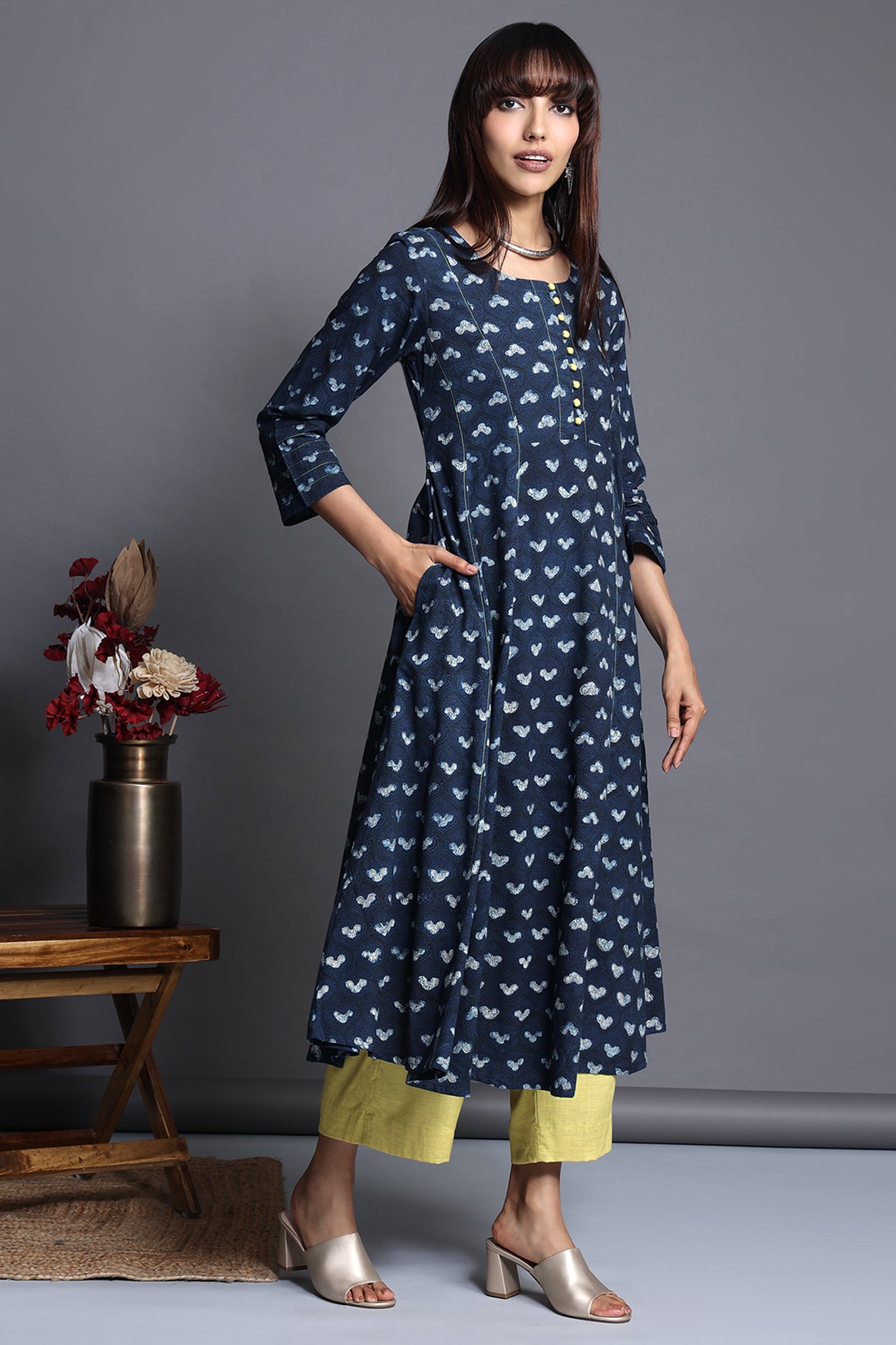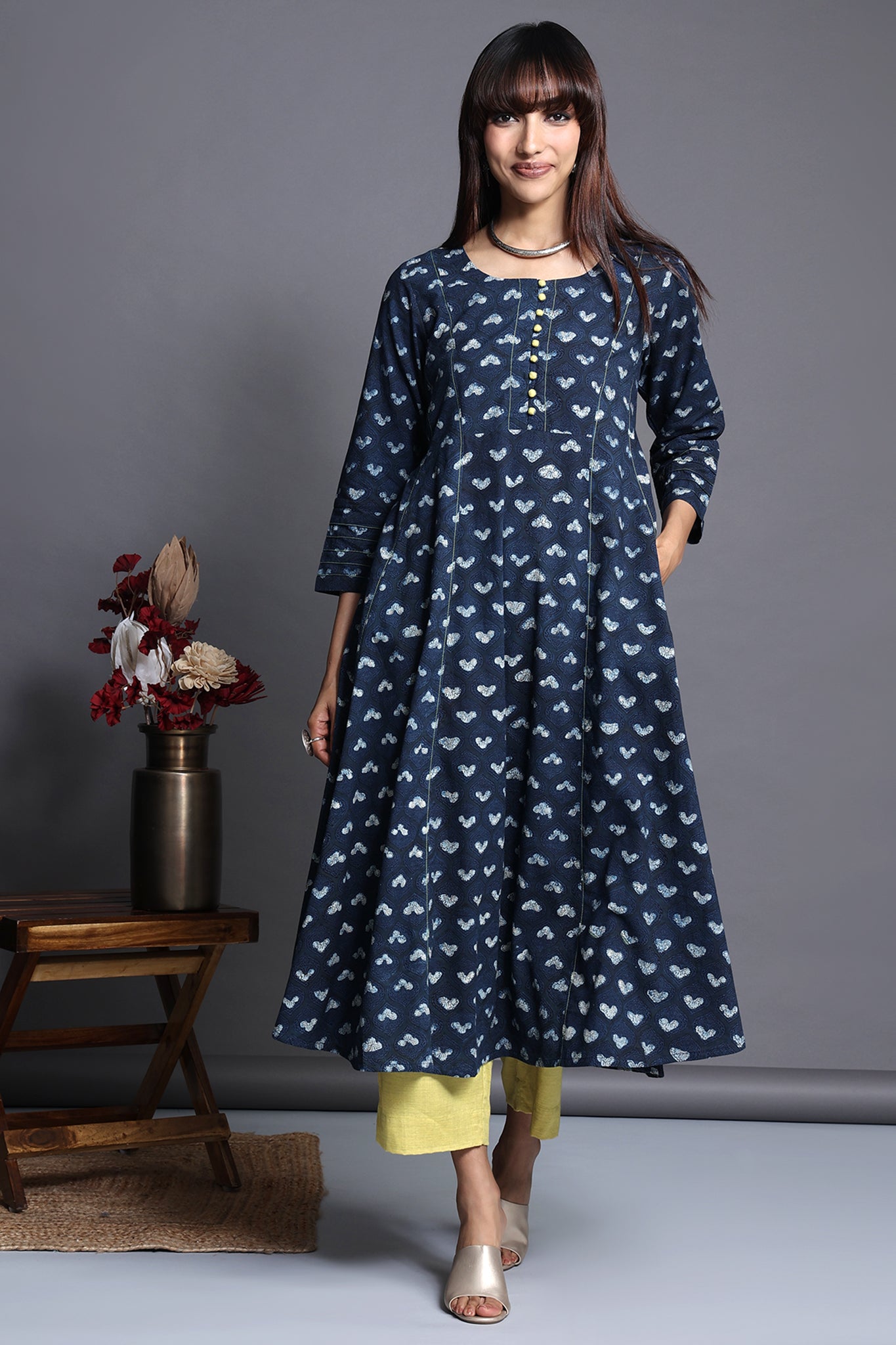 Indulge in the epitome of elegance with our Anarkali, a tribute to timeless grace. Crafted from the softest cotton, handblock printed in hues of natural indigo, sourced from the vibrant streets of Jaipur, this Anarkali is a celebration of artisanal beauty.