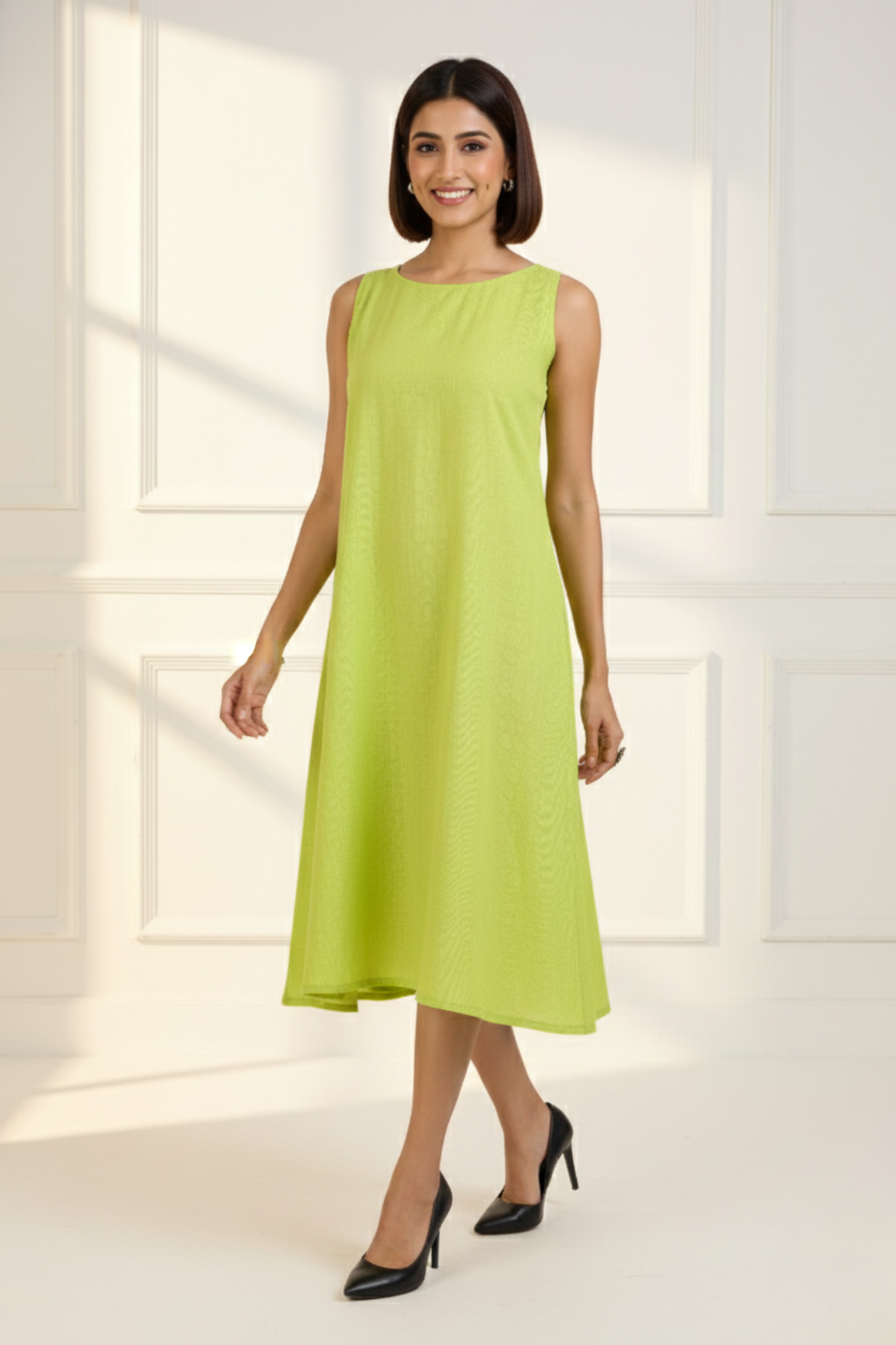 Sleeveless Dress In Lime South Cotton by Maati Crafts