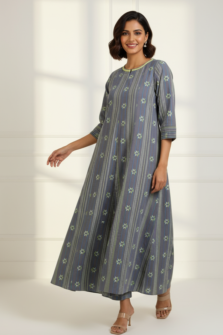 all our clothes require love & care. First wash dry clean recommended for longevity of clothes Wash separately in cold water. Do not soak or scrub hard with brush. Use mild detergents like baby shampoo.Do not wash with bleach or chlorine. Dry in shade or diffused light.Natural reds, indigos & blacks may tend to rub or bleed. This is an inherent quality of natural dyes. Dark colours may bleed onto light colours. All our printed fabrics are hand dyed and/or hand printed in batches. Mild variations may occur. this is not a defect. Handwoven and woven fabrics have an inherent nature of slubs. Do not try and remove them.