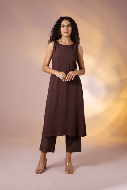 The set consists of Jacket and Inner Sleeveless dress. The pants in the image is part of styling. You can buy them it with the provided link.